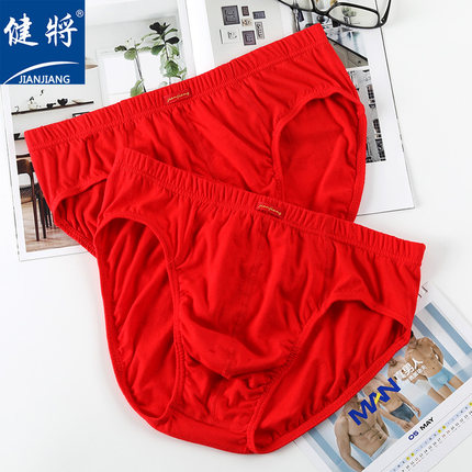 健将本命年男士内裤男100%纯棉三角裤全棉结婚大红色属马红短裤头