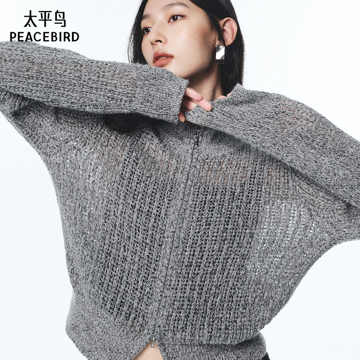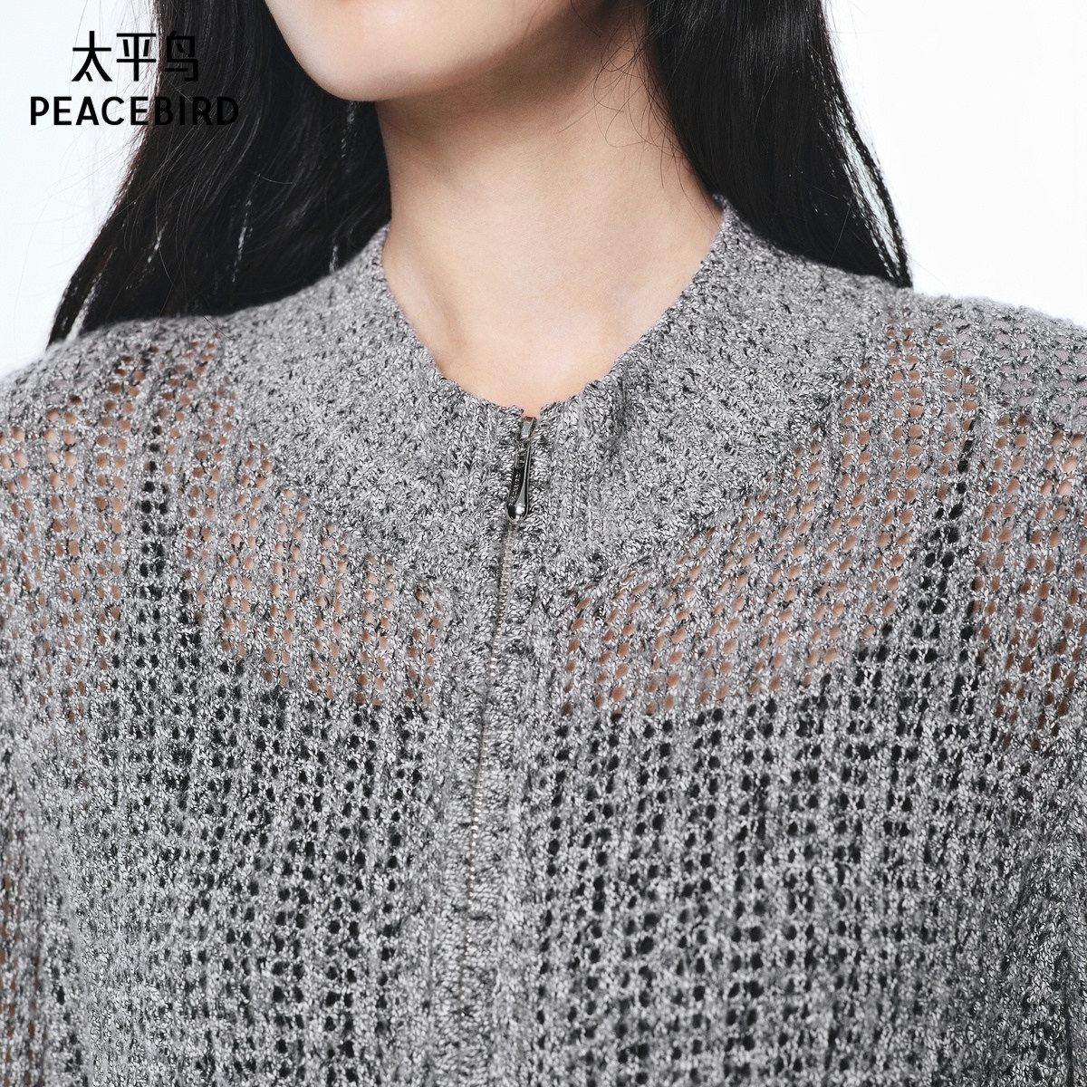 太平鸟双拉链质感修身短款开衫