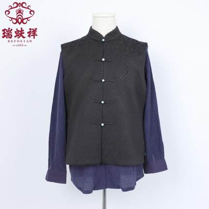 瑞蚨祥中式盘扣休闲唐装马甲中青年复古立领春秋男马夹国风背心