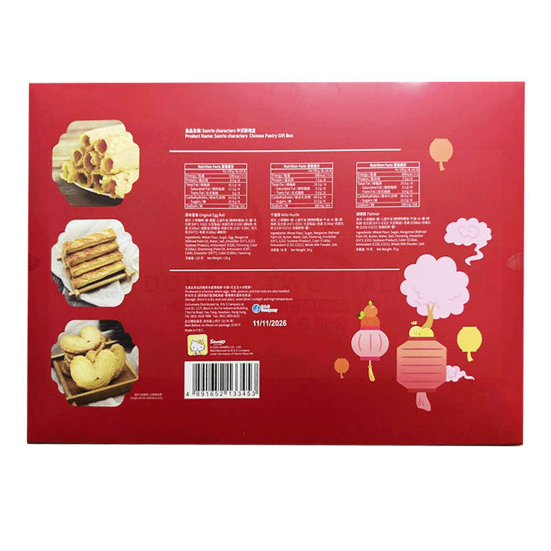 SANRIO - Sanrio角色中式饼礼盒(蛋卷120g+千层酥50g+蝴蝶酥70g )