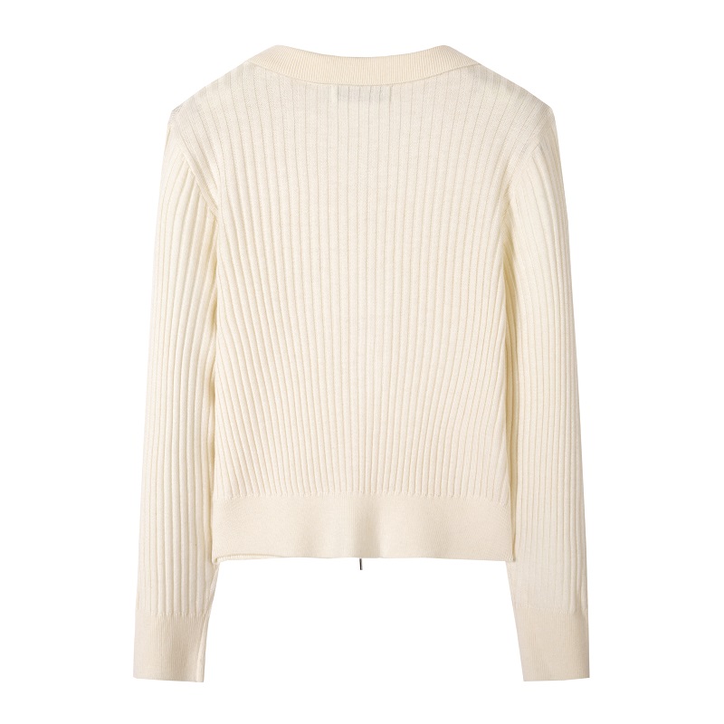 女双拉链翻领上衣修身春秋短款针织开衫外套 UWA01020881W506