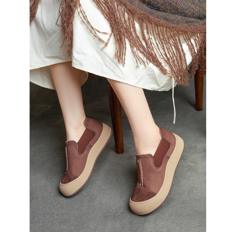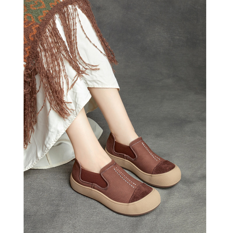 2025秋季新款英伦风真皮手工圆头拼色套脚平底休闲单鞋一脚蹬女鞋