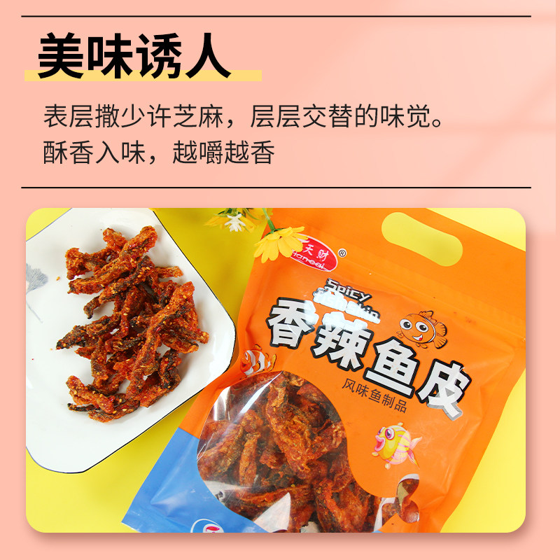 天财香辣鱼皮即食零食250g大包装海鲜甜辣鱼皮鳕鱼皮小吃开袋即食