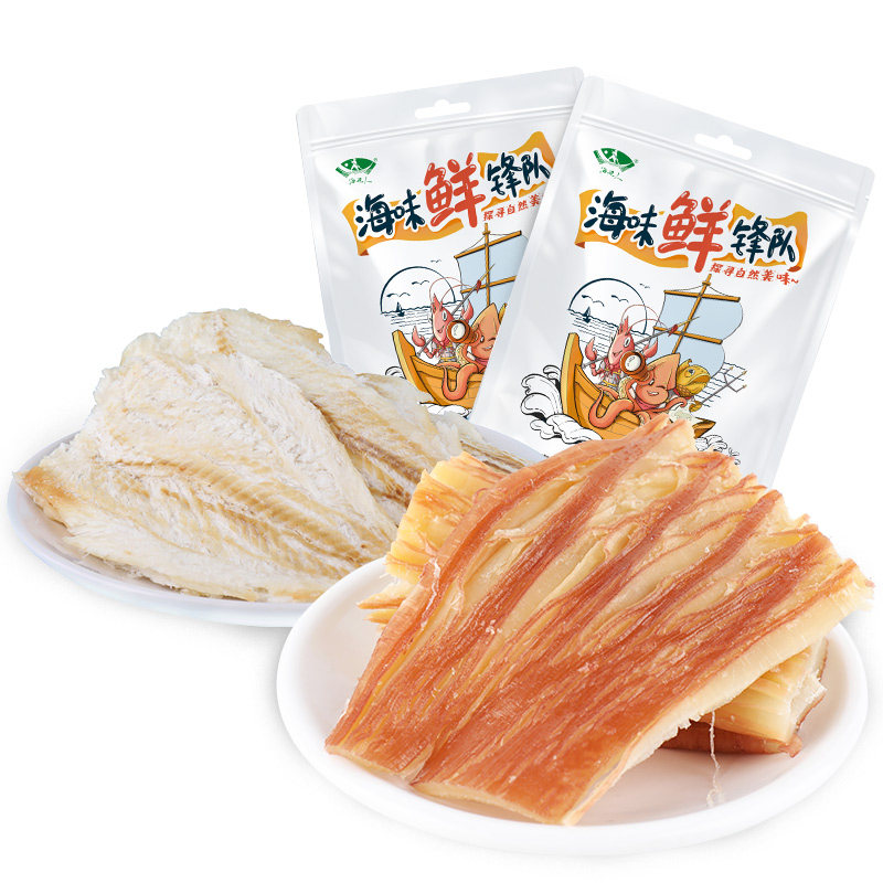 海边人 鲜烤鳕鱼片5包加碳烤鱿鱼5包鱼片手撕鱿鱼即食海味小吃