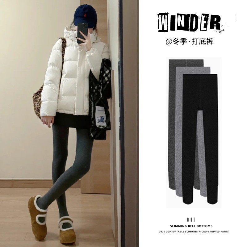 灰色打底裤女冬季加绒2025新款保暖紧身秋裤小个子外穿踩脚棉裤袜
