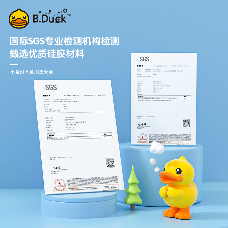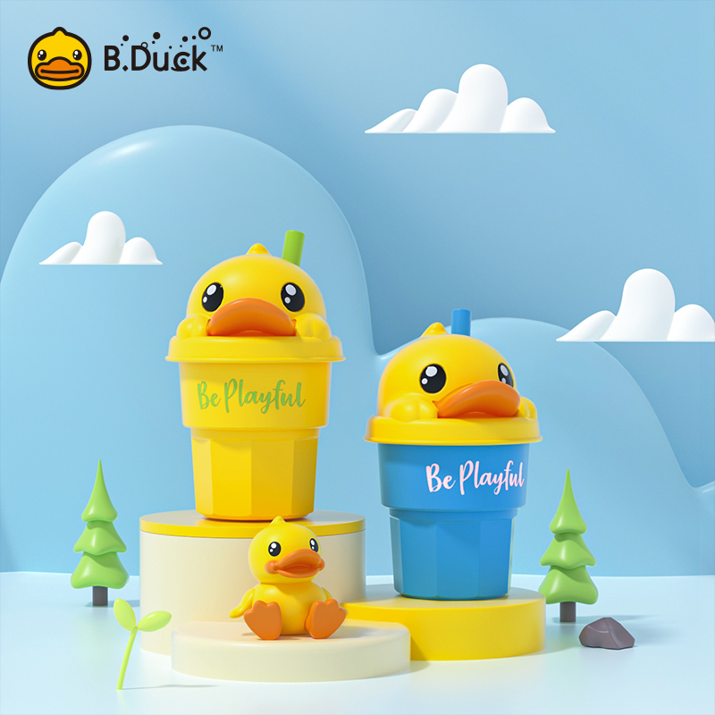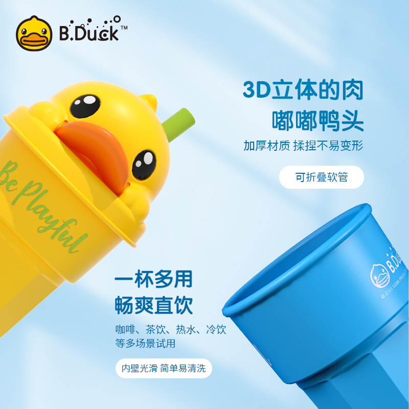 B.Duck官方 小黄鸭硅胶杯安全卫生便携耐高温户外运动吸管水杯