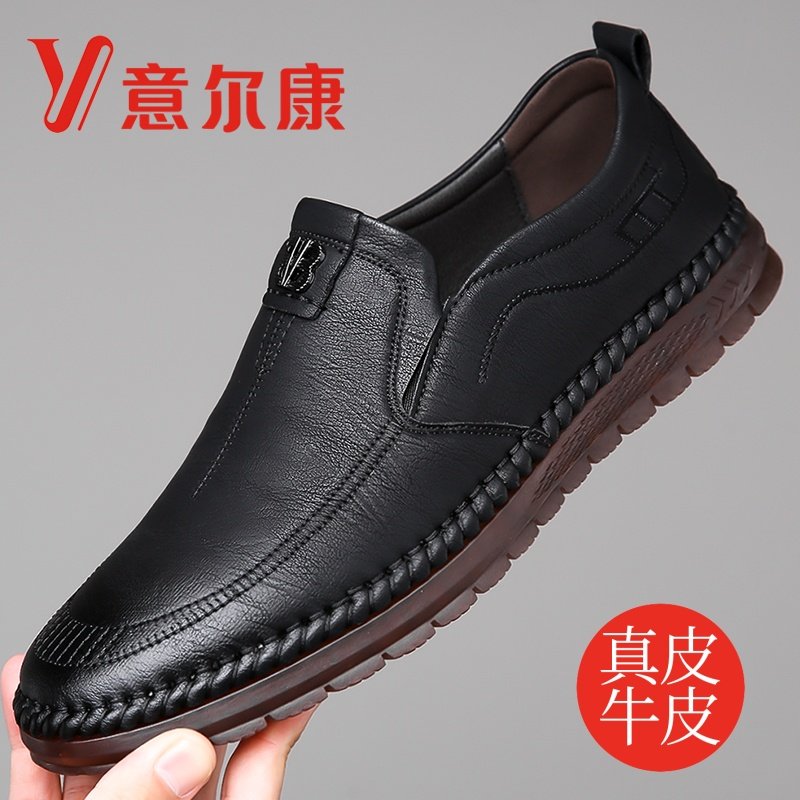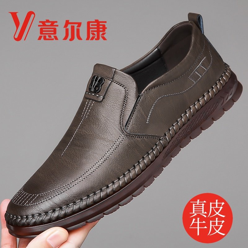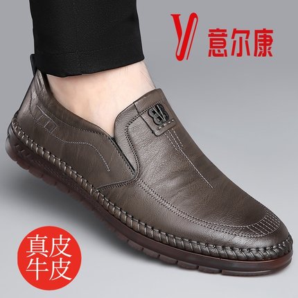 意尔康男鞋2025新款秋季真皮商务休闲皮鞋男牛筋底鞋软底防豆豆鞋