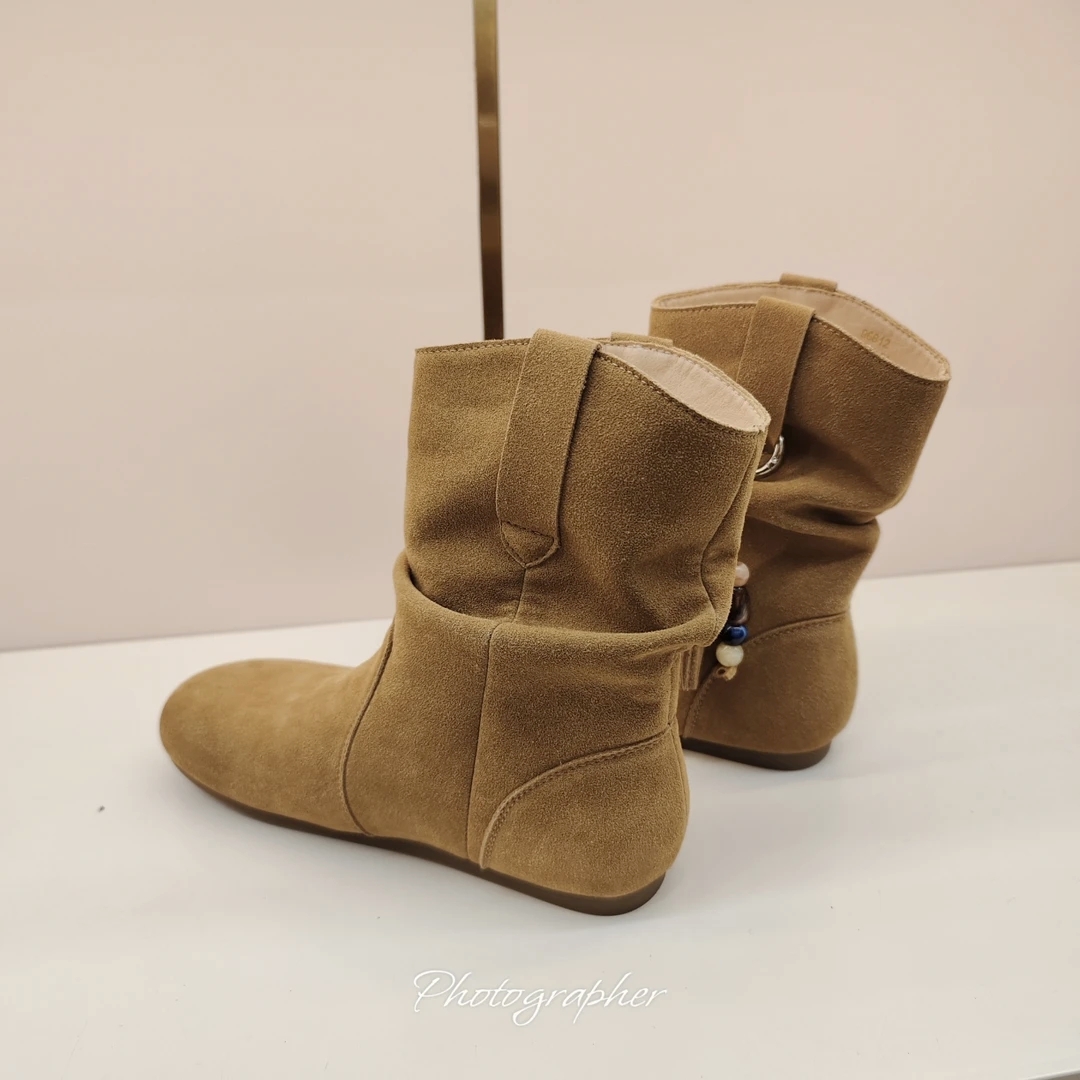 巴宝秀同款磨砂皮短靴96612秋冬休闲马丁靴真皮平底靴子低跟单靴