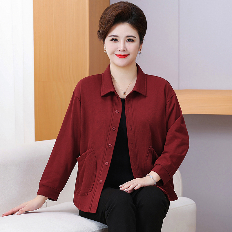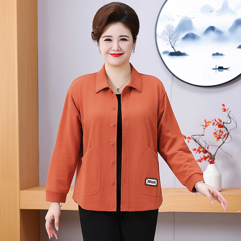 春秋新款胖妈妈洋气长袖翻领衬衫