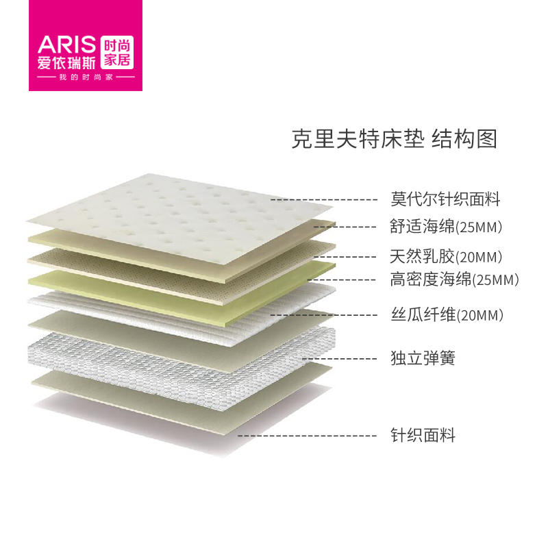 ARIS爱依瑞斯卧室乳胶垫子独立簧28cm天然无胶双人床垫 克里夫特