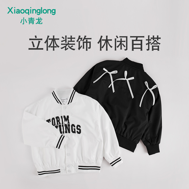 小青龙春装新品儿童蝴蝶结字母棒球服男童女童上衣休闲夹克衫外套