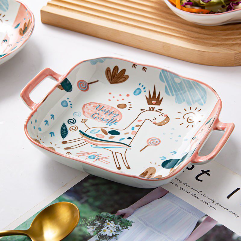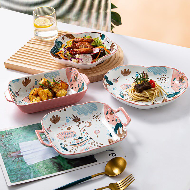 可爱日式餐具碗碟套装菜盘碟子创意水果盘家用陶瓷烤盘子2022新款