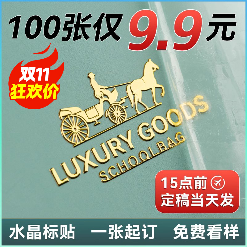 烫金logo贴纸水晶标贴金属标签定制uv转印贴透明商标打印移丝印广告定做自粘刻字撕膜留字公司防水不干胶印刷