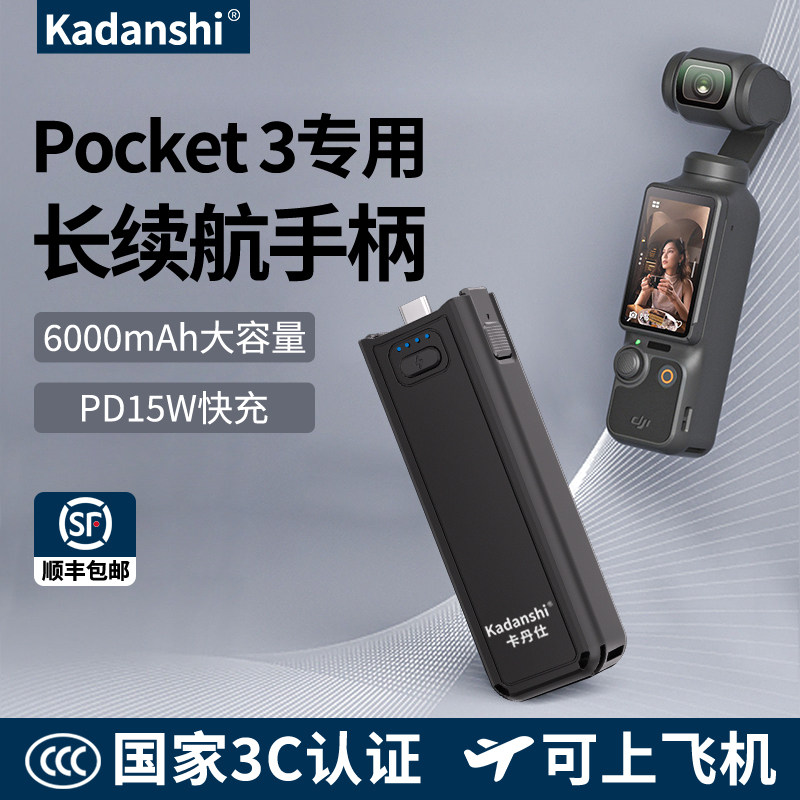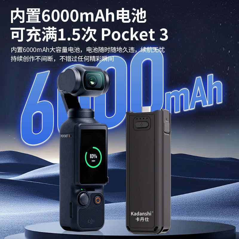 【国家3c认证】适用DJI大疆Pocket3续航手柄电池6000毫安相机配件