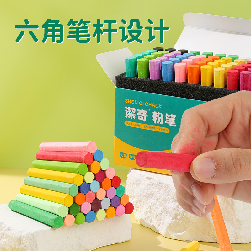 深奇彩色粉笔黑板报专用无尘无毒儿童白色教师专用颜色鲜艳不脏手