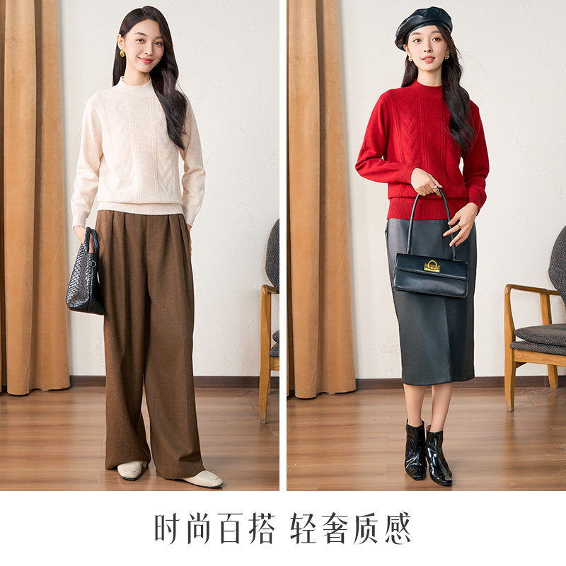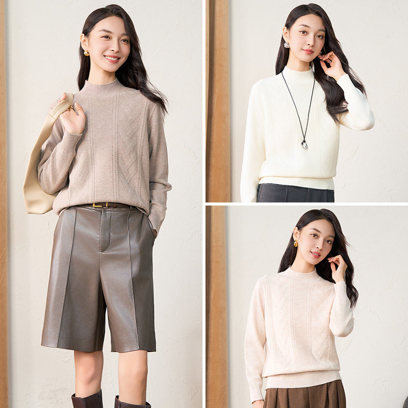 【直播专享】春竹100%绵羊毛半精纺半高领加厚女士针织衫