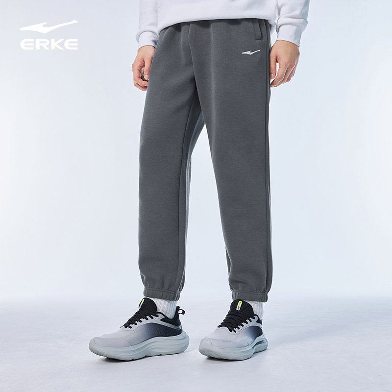 鸿星尔克裤子男秋季新款男士灰色针织运动裤男生休闲长裤透气卫裤
