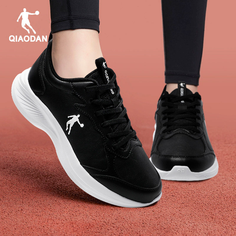 乔丹女鞋黑色皮面运动鞋2025秋冬季新款减震耐磨羽毛球鞋跑步鞋子