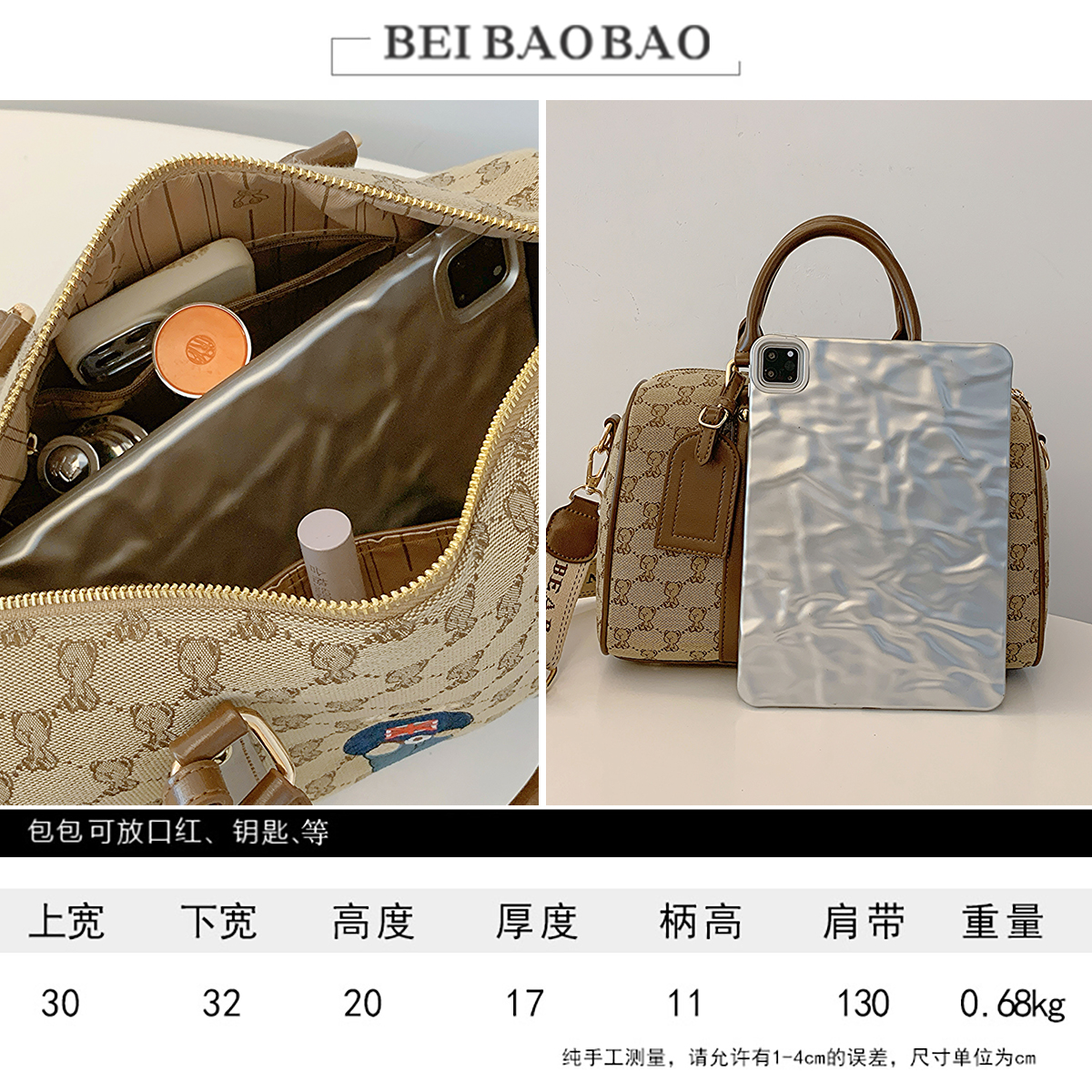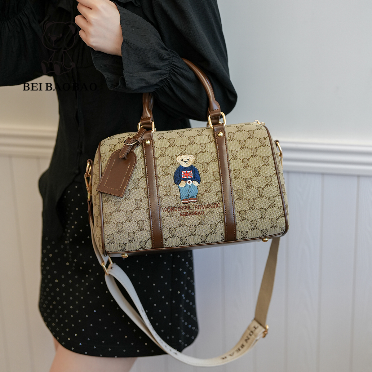 北包包设计感提花帆布休闲单肩斜挎包时尚潮流包包卡通小熊女包