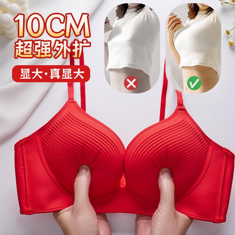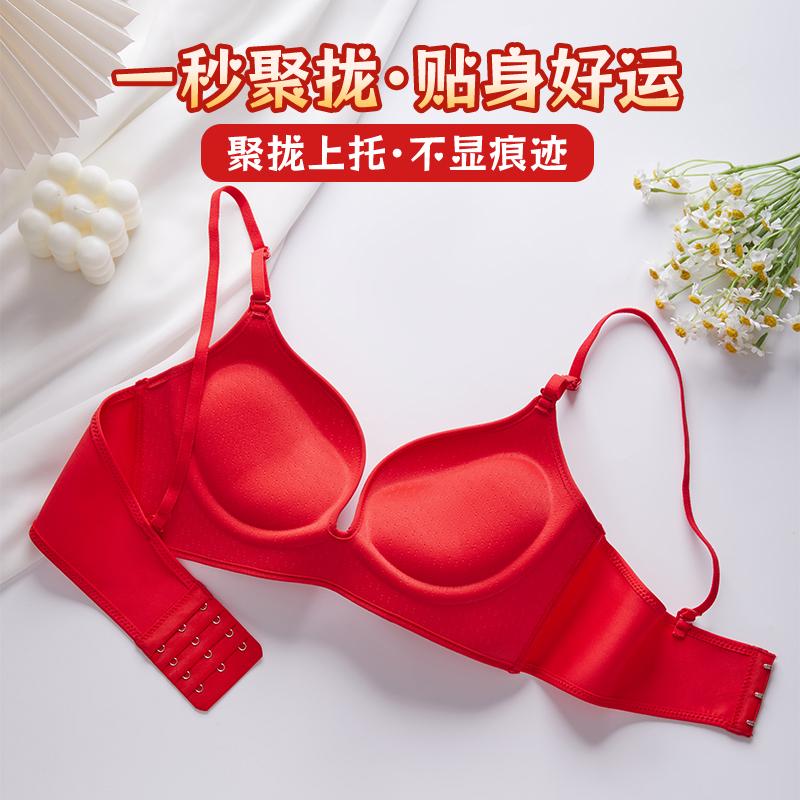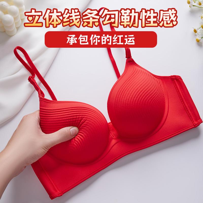 红色文胸无钢圈聚拢加厚