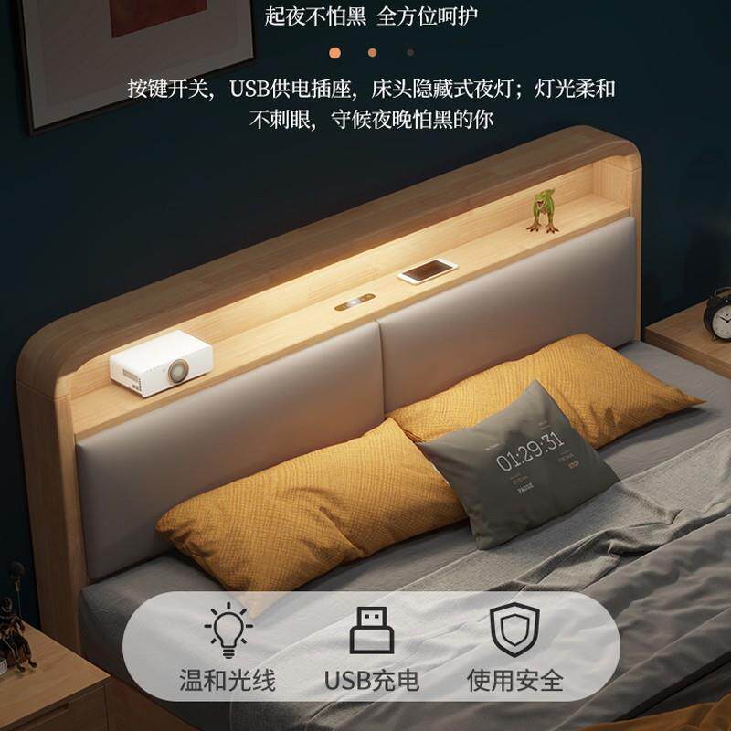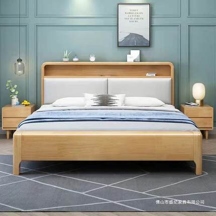 床实木床现代简约床1.8米卧室双人床1.2米橡胶木.实木床1.5米床