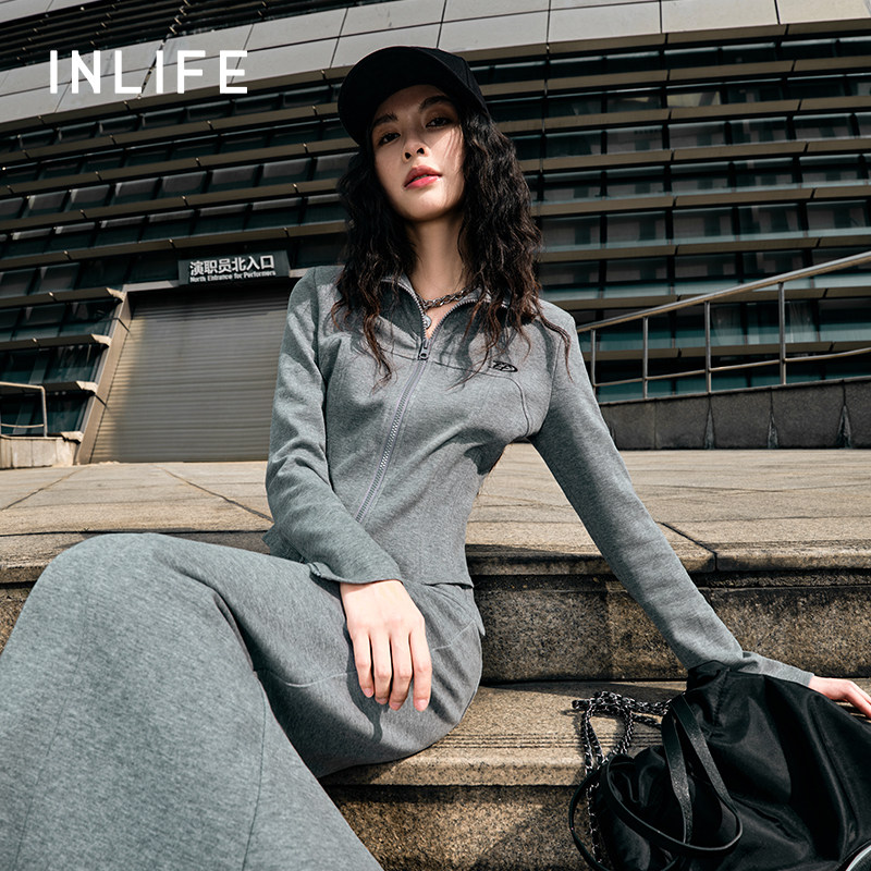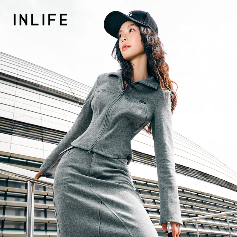 伊纳芙美式修身翻领拉链外套女2025秋季新款高级时尚气质休闲上衣