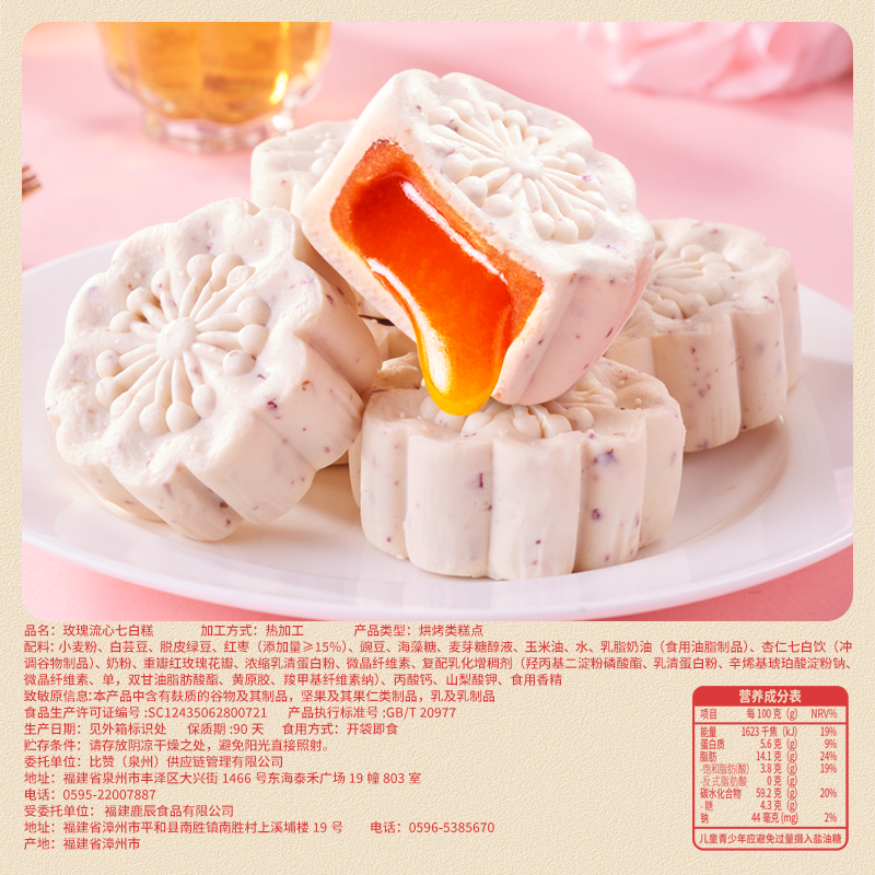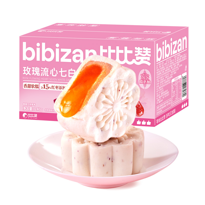 比比赞玫瑰流心七白糕面包糕点整箱早餐速食中秋送礼月饼零食小吃