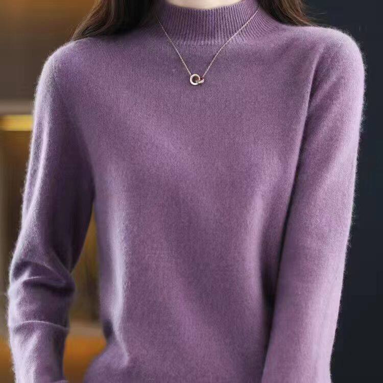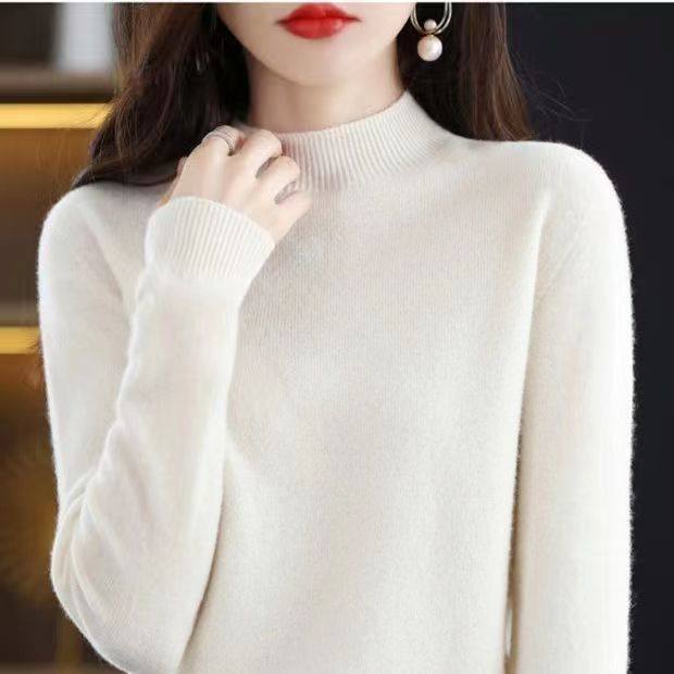 鄂尔多斯市羊毛衫女通勤风半高领针织衫女套头百搭打底毛衣极简风
