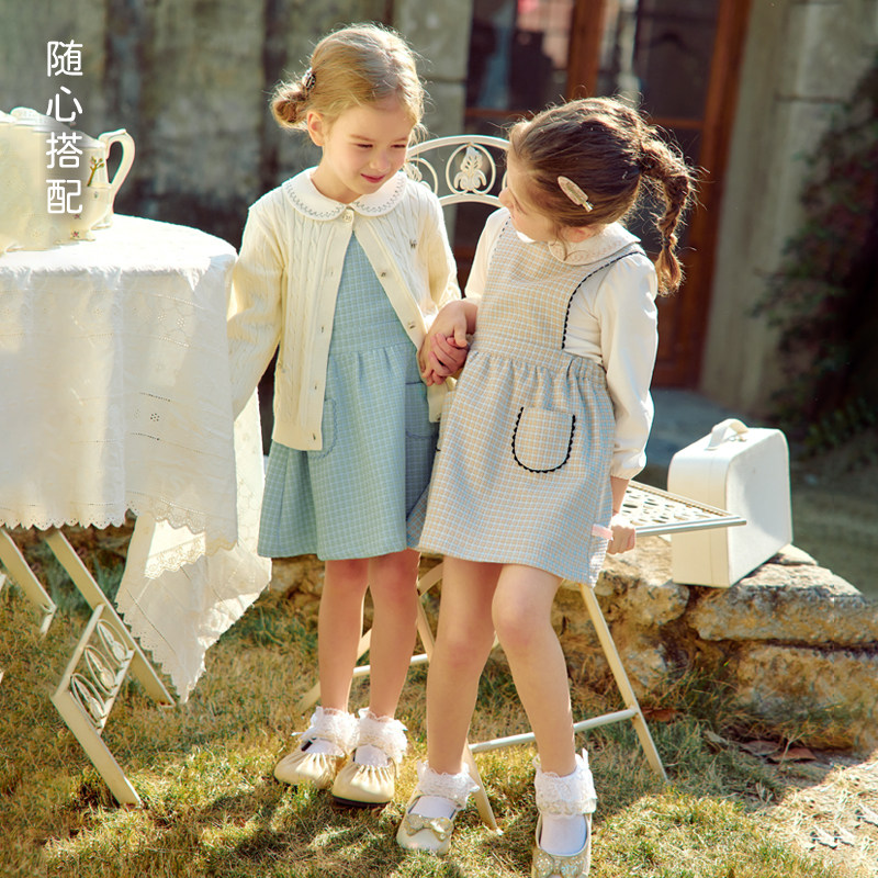 【SEQB小象Q比新款】2026年春夏小香风格子甜美连衣裙女童两件套