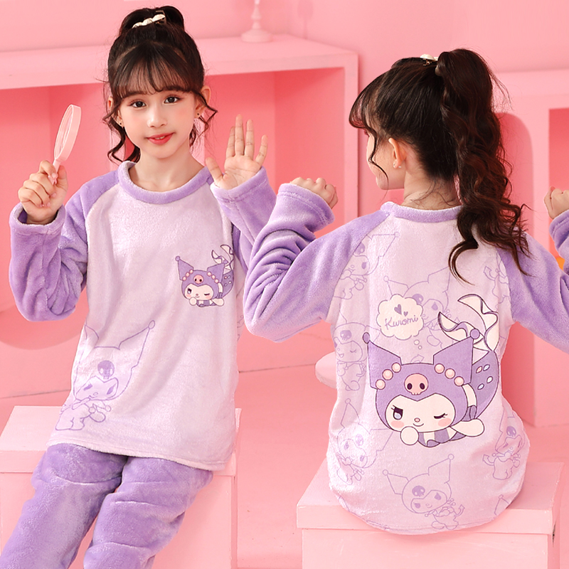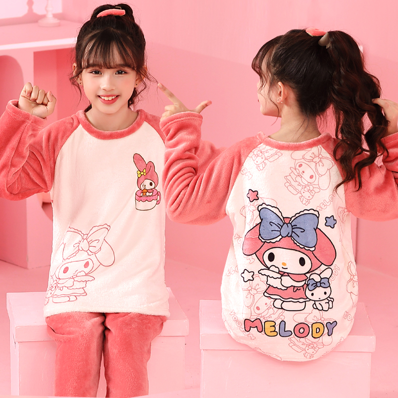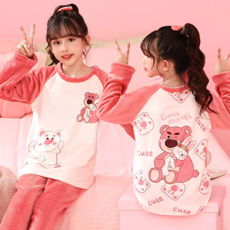 儿童睡衣珊瑚绒女童秋冬季加绒加厚法兰绒小女孩中大童家居服套装