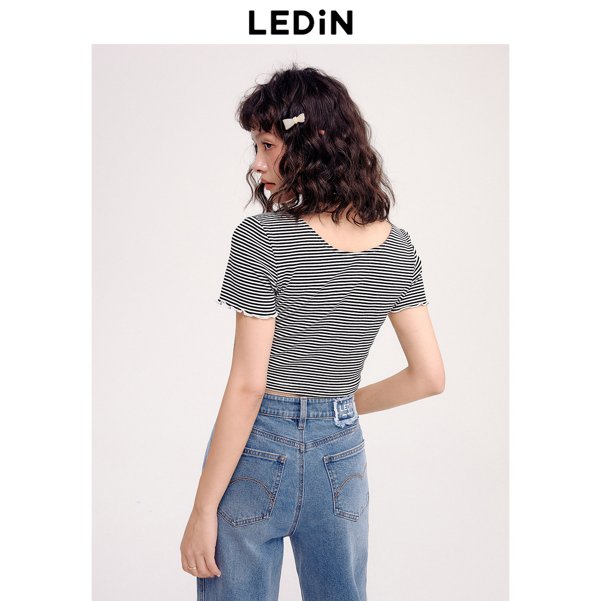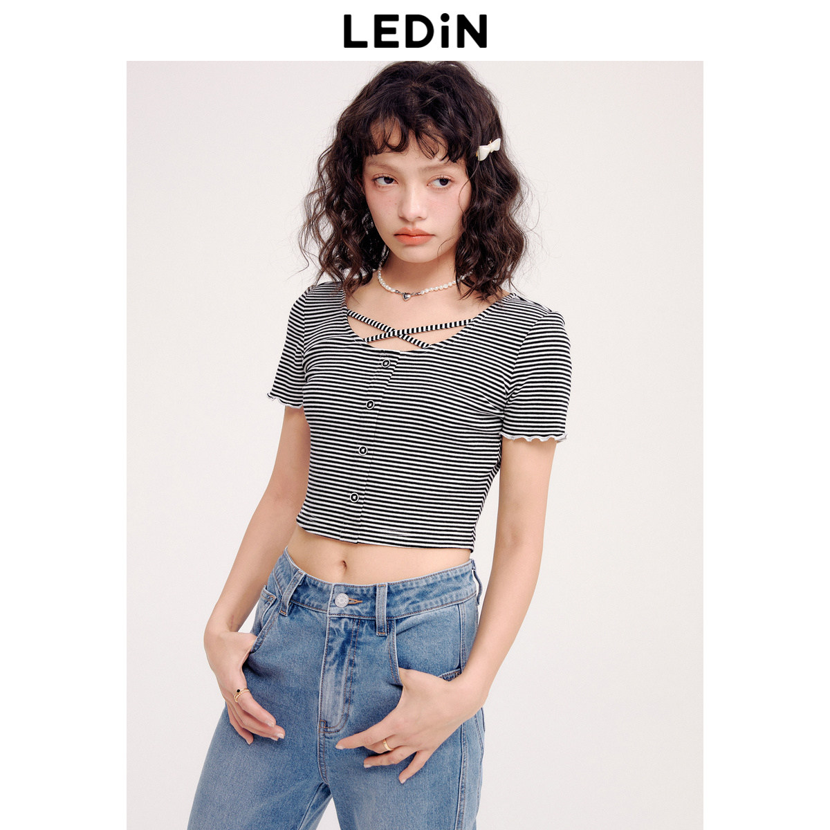 乐町露背交叉T恤女夏纯欲风短袖C2DAD2202