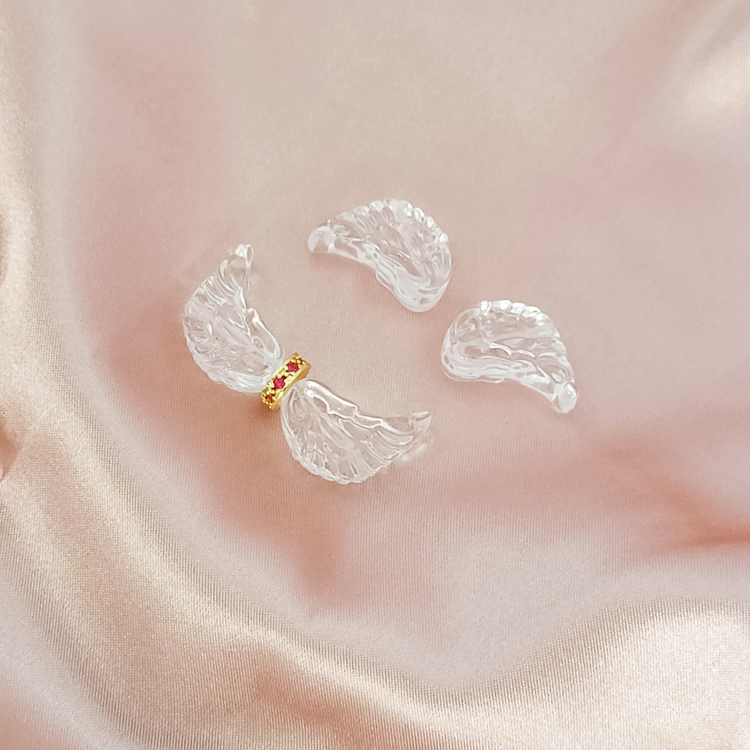 天然白水晶雕刻羽毛翅膀桶珠隔珠元宝猫爪吊坠手工DIY手链项链配