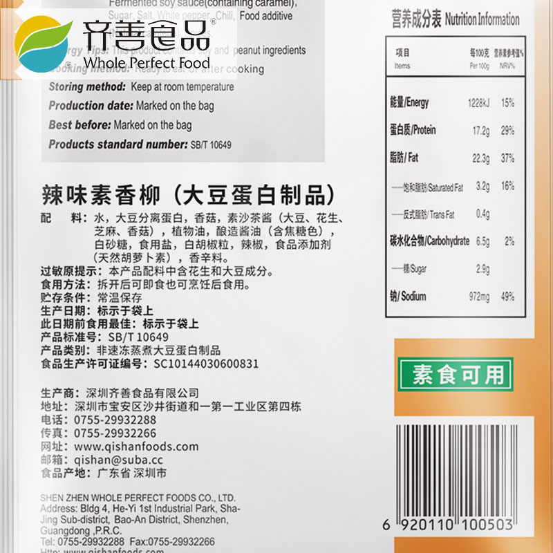 齐善素食辣味5包大豆制品