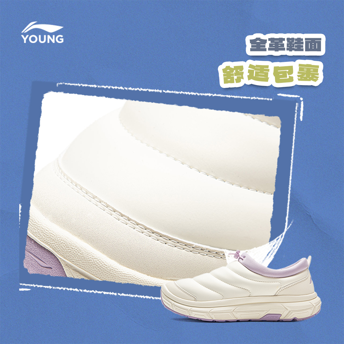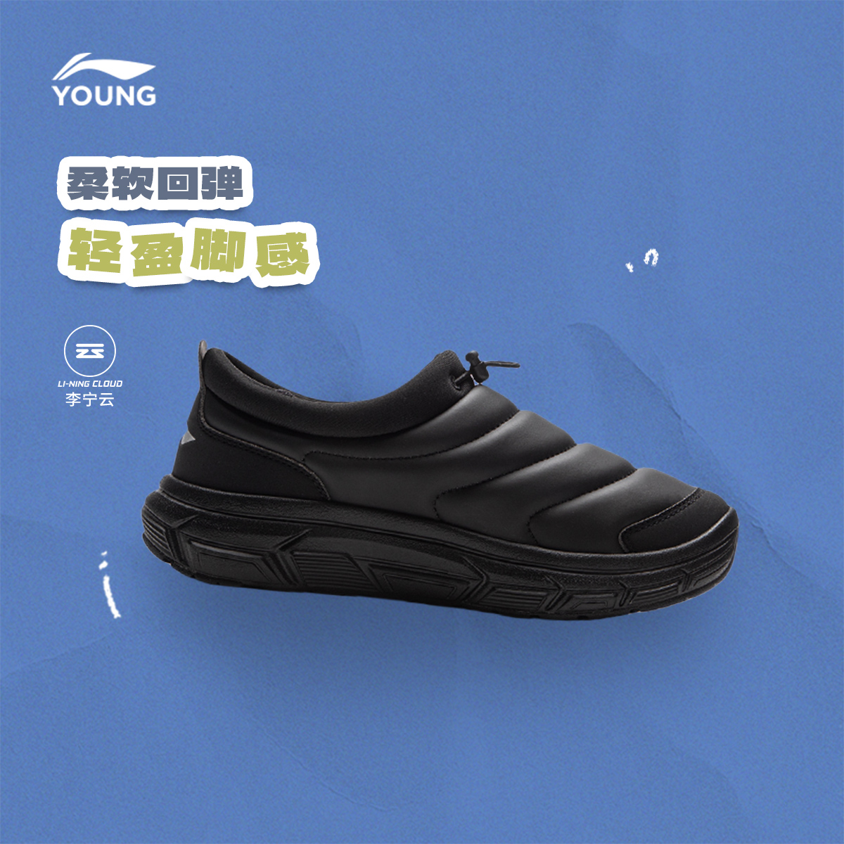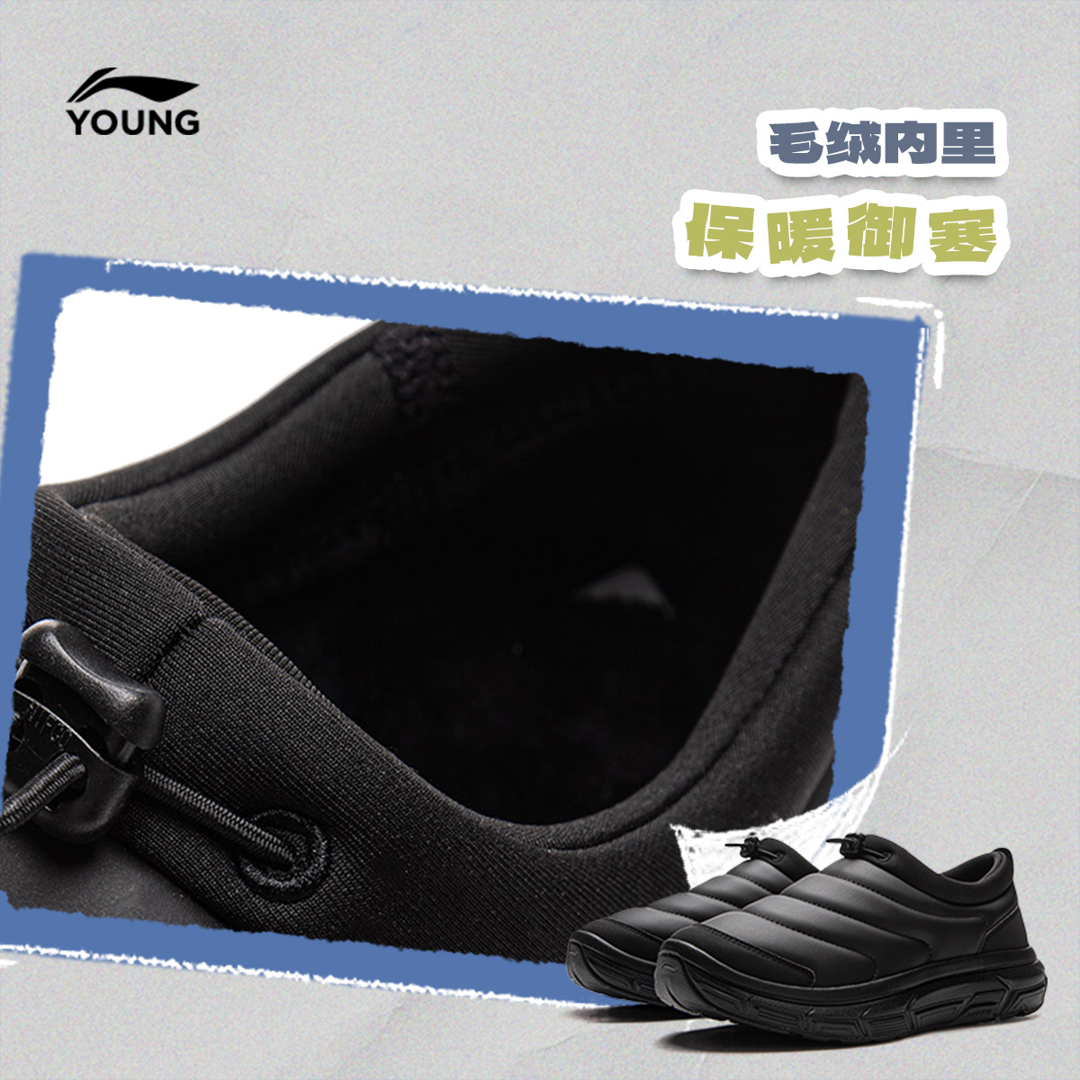 商场同款|李宁儿童加绒二棉鞋蓬蓬鞋25新款冬男童鞋一脚蹬运动鞋