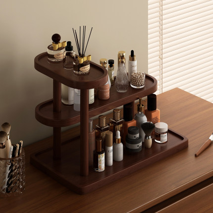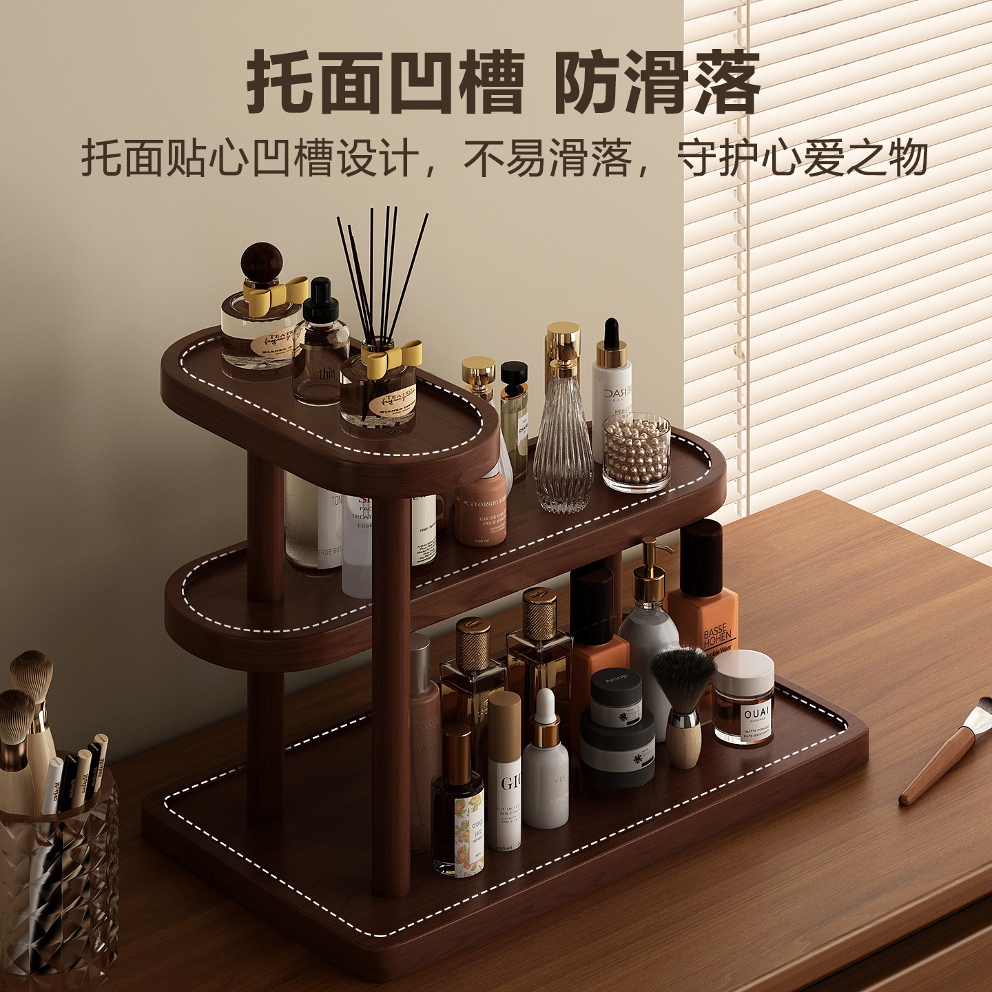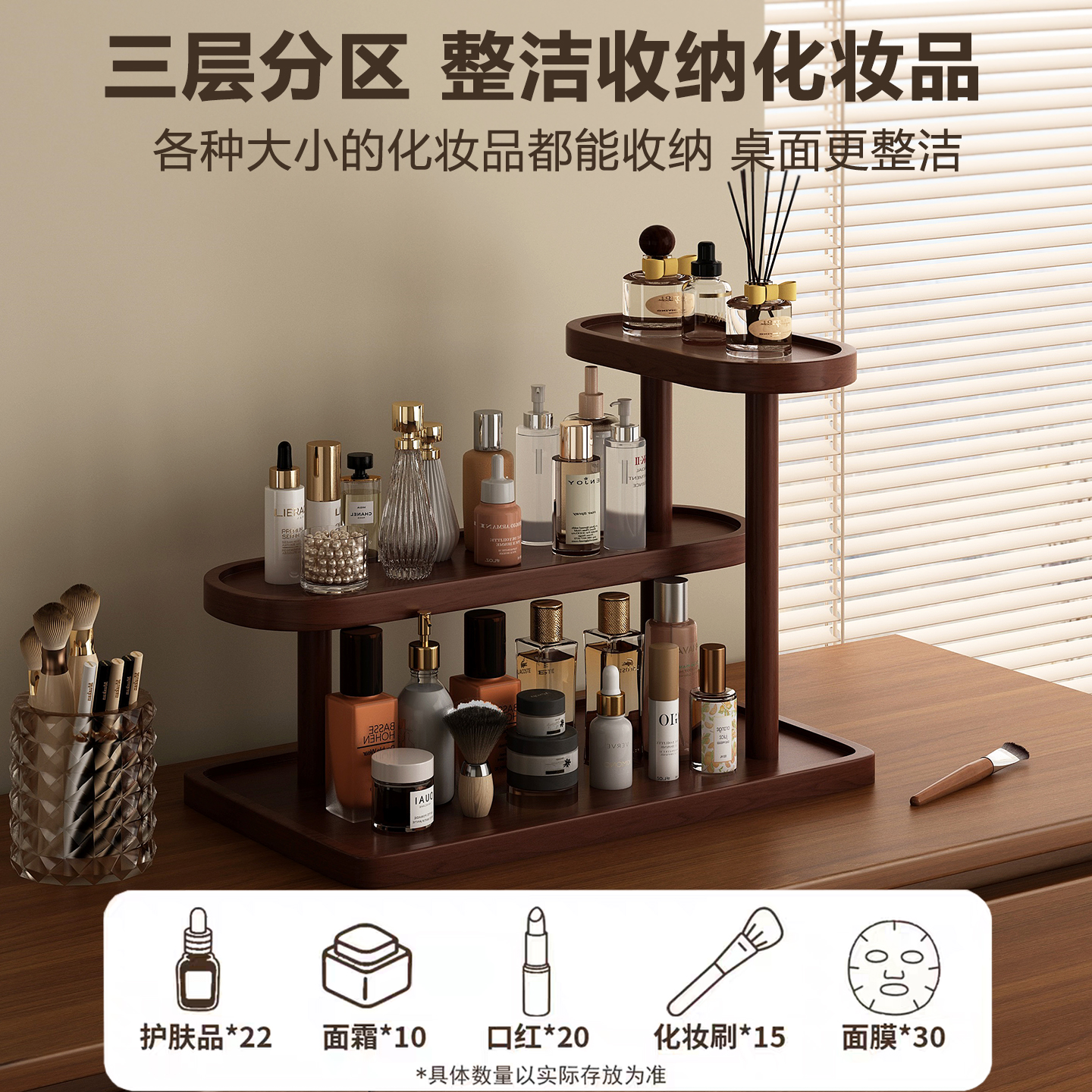 实木化妆品置物架桌面多层收纳架分格梳妆台香水口红小杂物整理盒