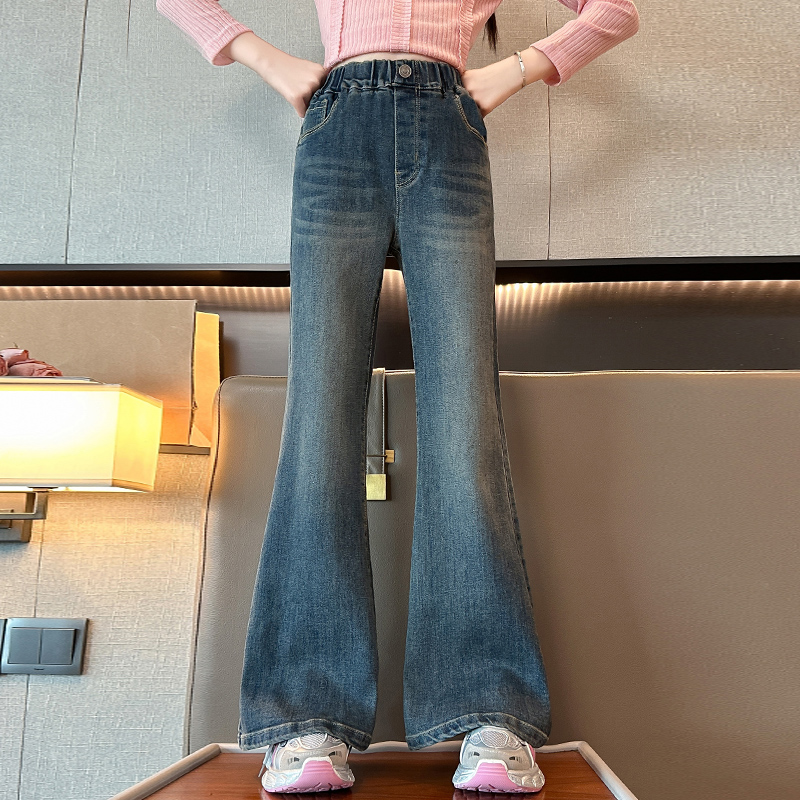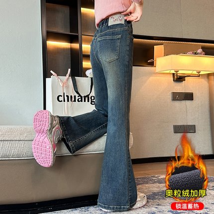 女童喇叭裤秋冬款洋气微喇长裤女大童韩版时尚加绒牛仔裤儿童裤子