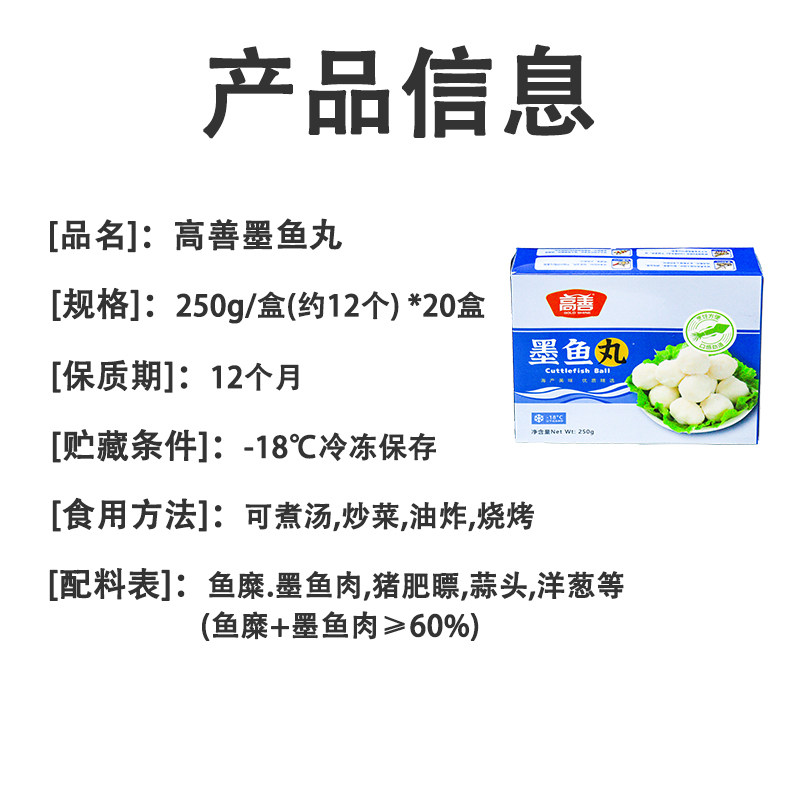 整箱高善墨鱼丸潮汕手打鱼丸花枝丸麻辣烫火锅丸子冷冻半成品商用