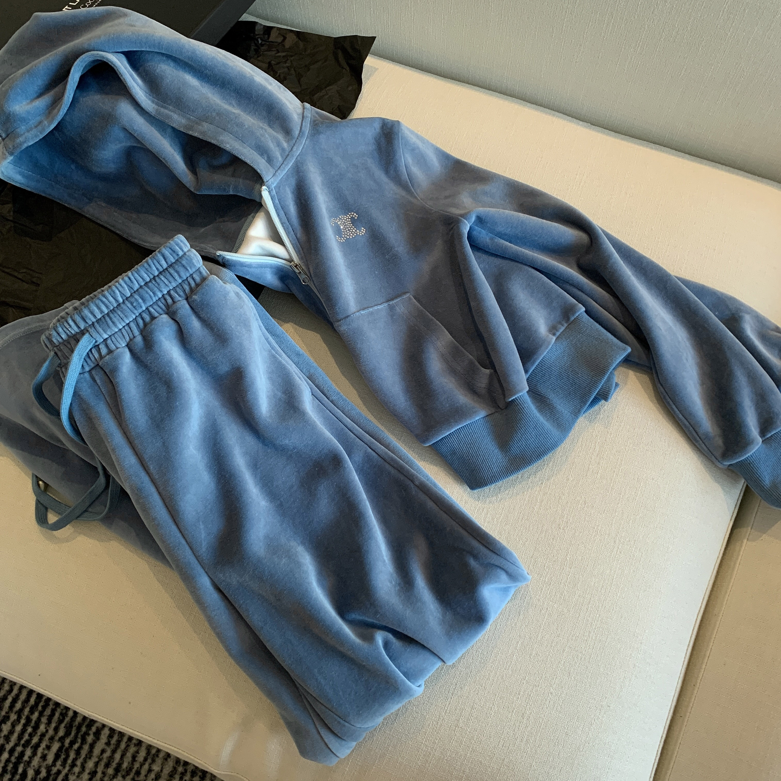 休闲丝绒套装女秋冬小洋装气质名媛运动风外套长裤两件套
