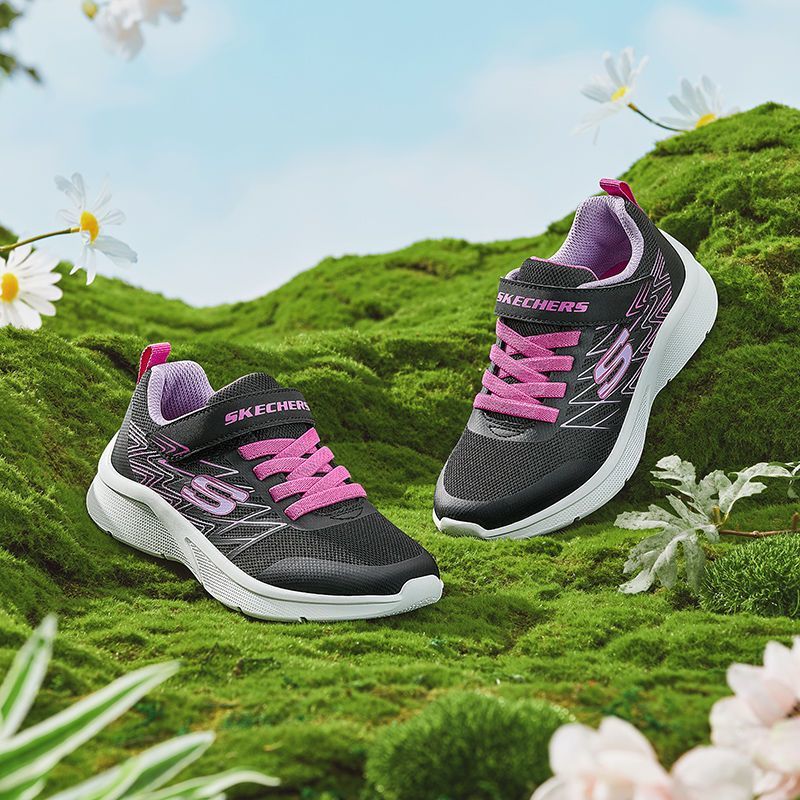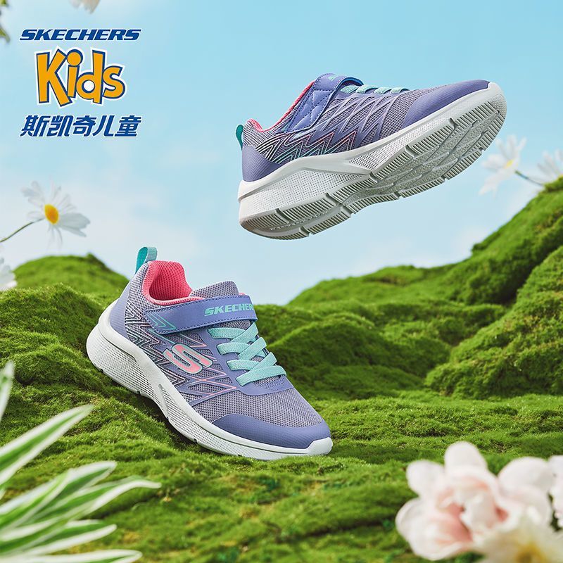 Skechers斯凯奇童鞋女童网鞋春秋透气网面运动鞋魔术贴儿童跑步鞋