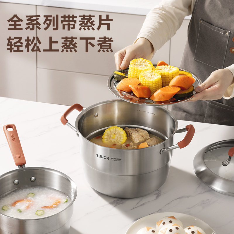 苏泊尔奶锅辅食锅不锈钢无涂层家用宝宝泡面煮面锅小汤锅燃气灶