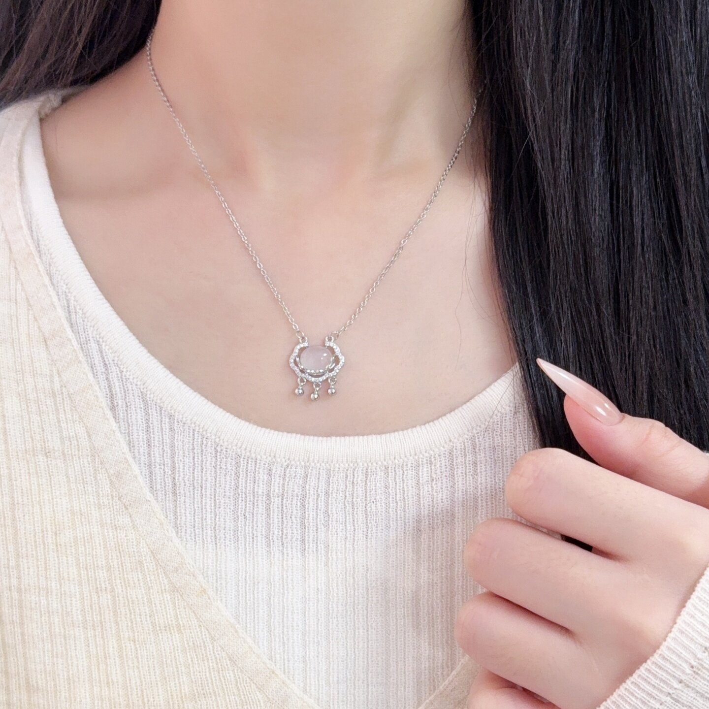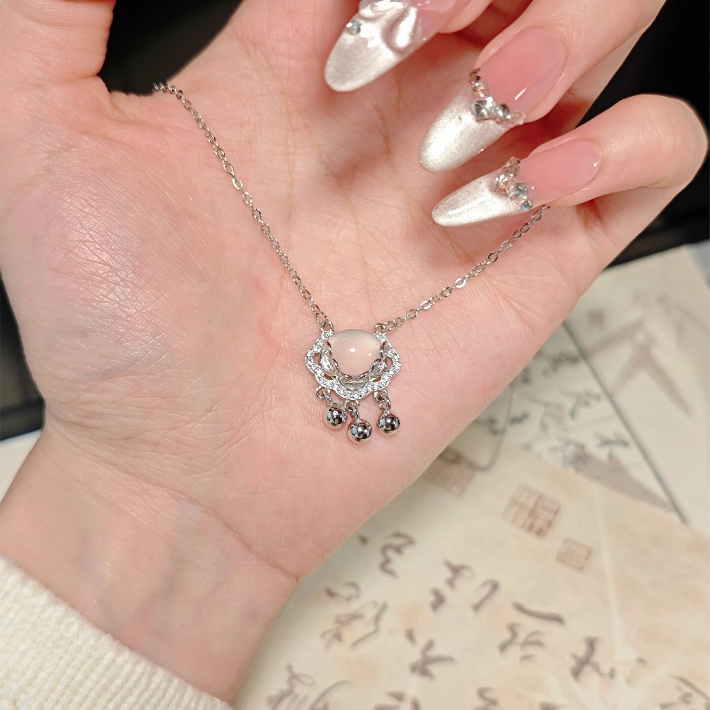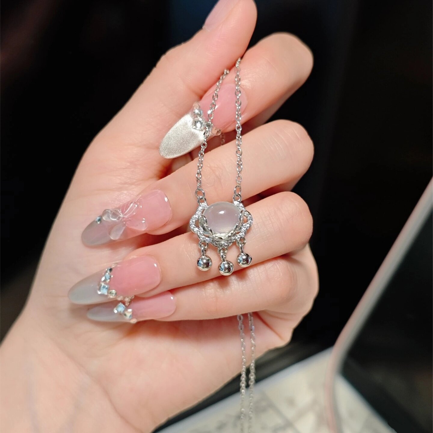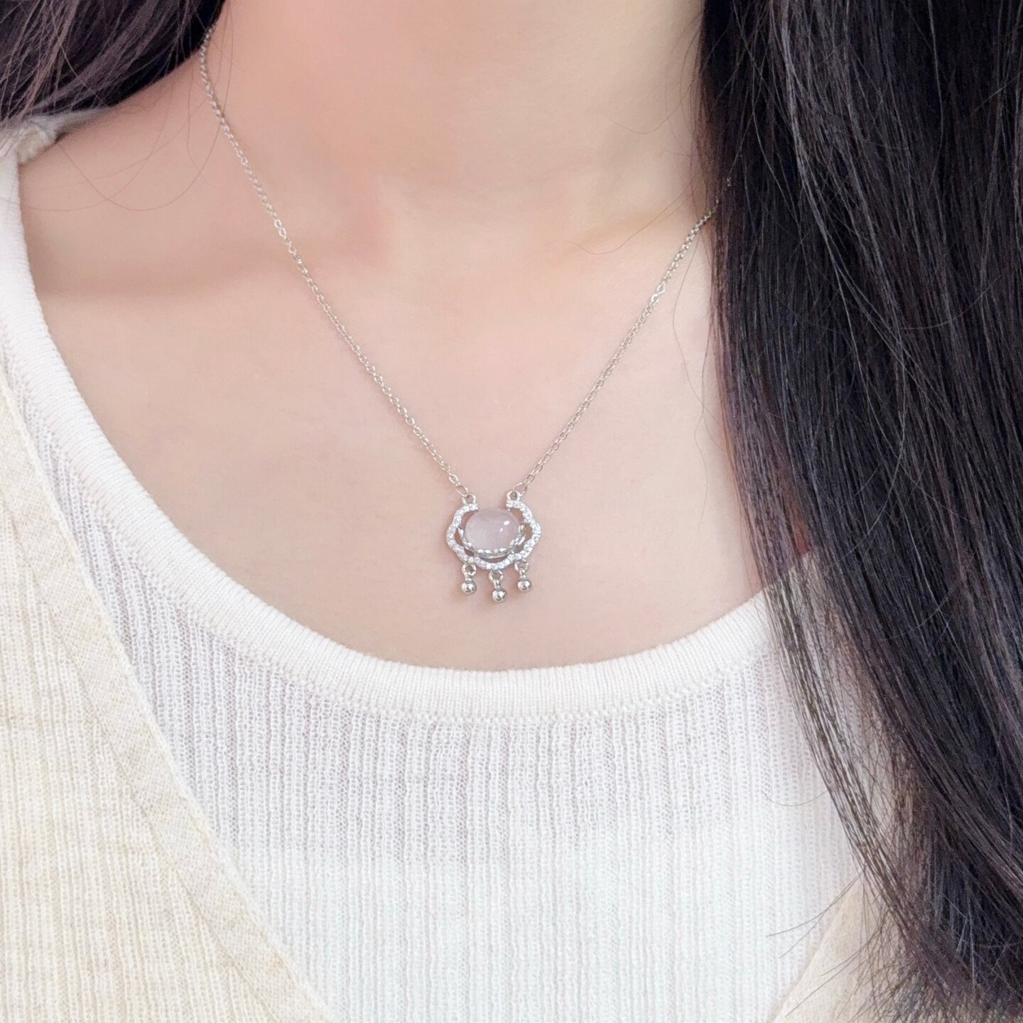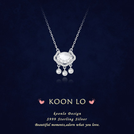 KoonLo「玉髓」长命平安锁项链女S999纯银轻奢流苏吊坠锁骨链礼物