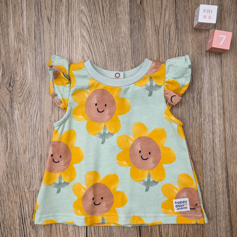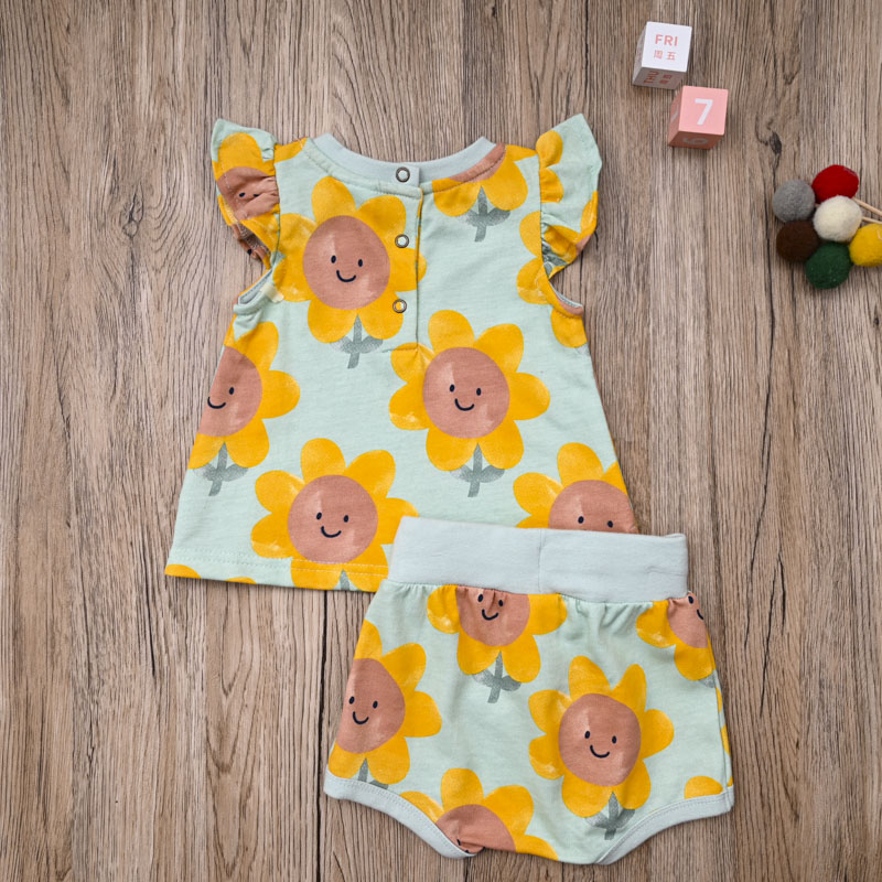 外贸欧美 女宝夏季纯棉飞袖T恤上衣休闲短裤平角裤子婴儿两件套装