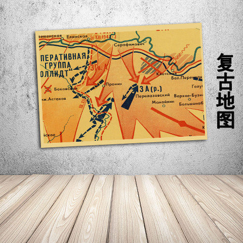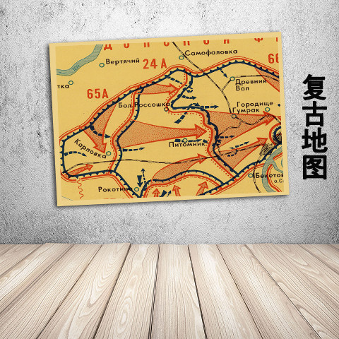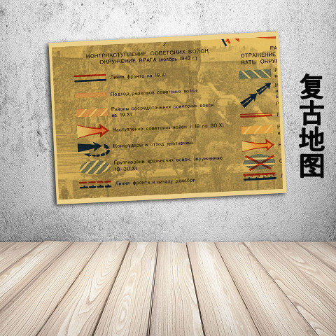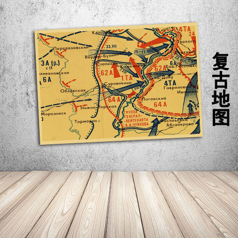 苏联斯大林格勒战役地图复古文艺牛皮纸画装饰画壁画挂画墙画画芯