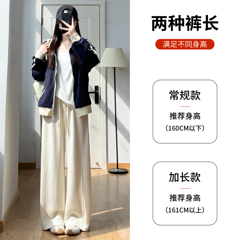 米白色羊绒弯刀裤女秋季2025新款小个子高腰显瘦宽松休闲阔腿卫裤