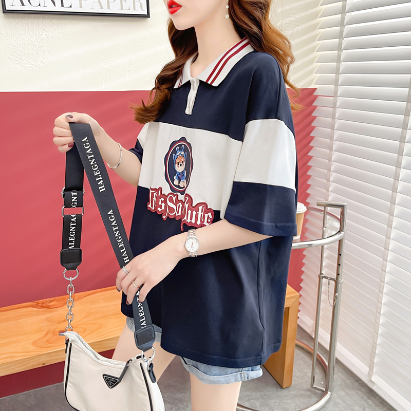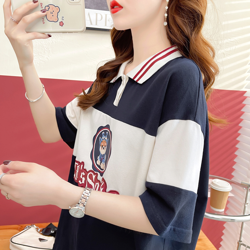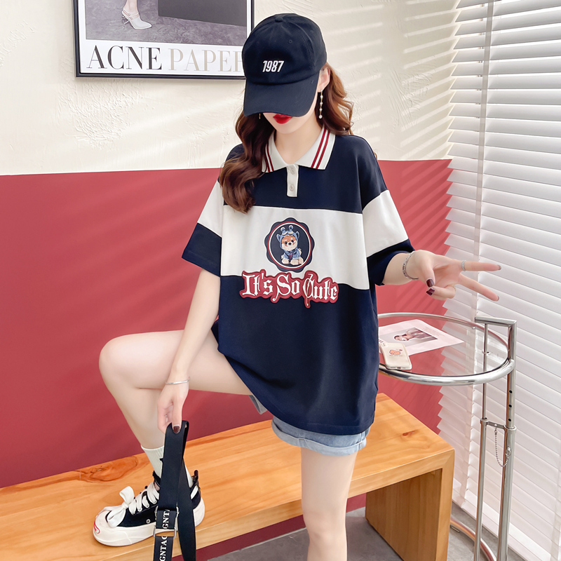 设计感小众短袖t恤女夏季韩版百搭宽松大码翻领polo衫半袖上衣服