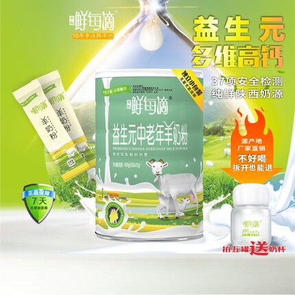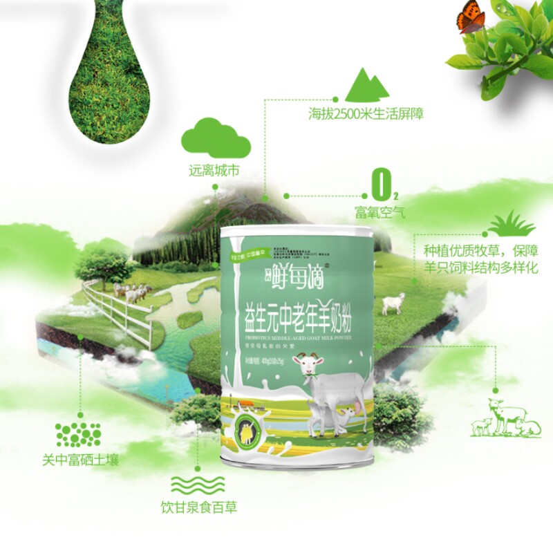 陕西奶源鲜每滴益生元中老年羊奶粉多维高钙富硒成人老人包装400g