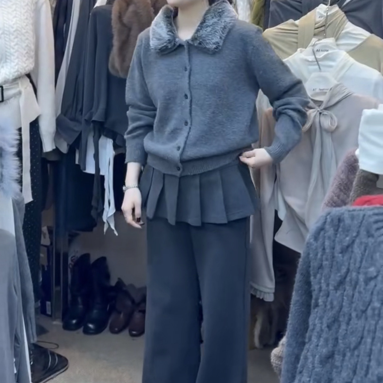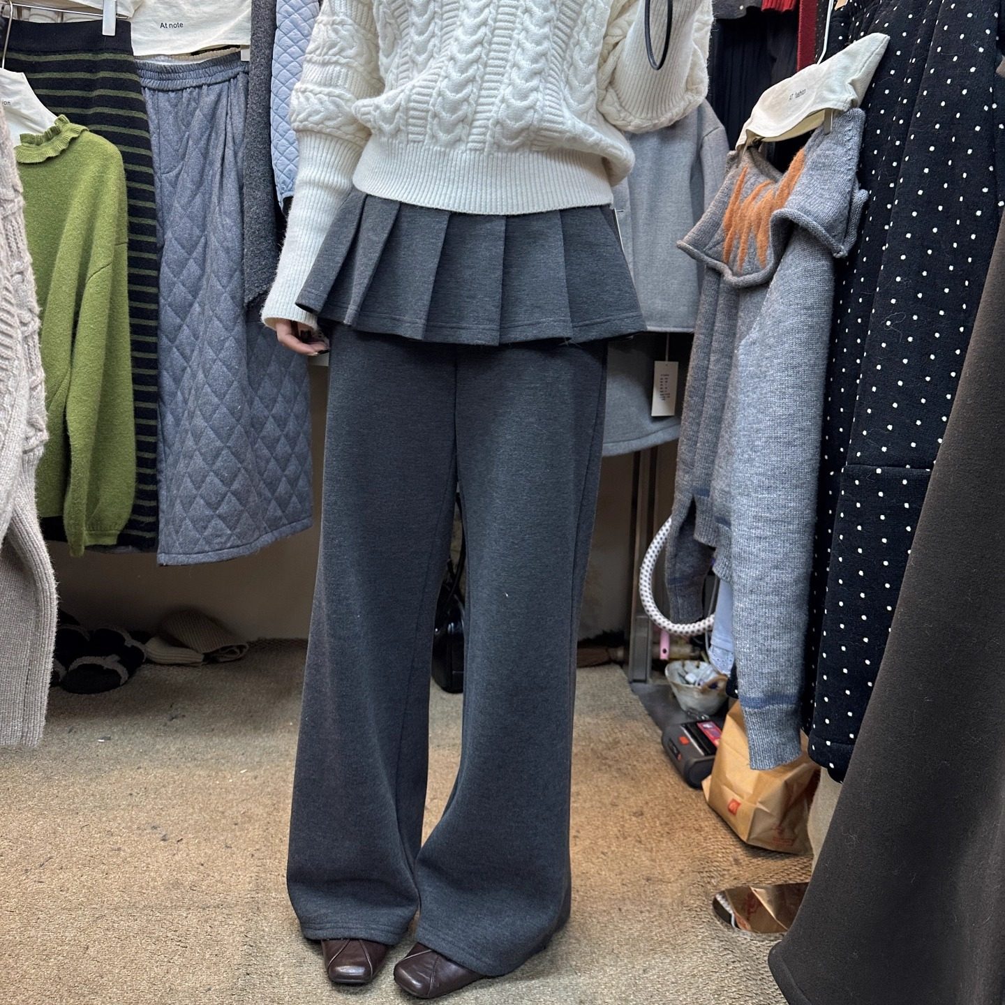 AT fashion秋冬加绒屁帘裤百褶裙皮帘微辣直筒休闲裤垂感拖地裤潮