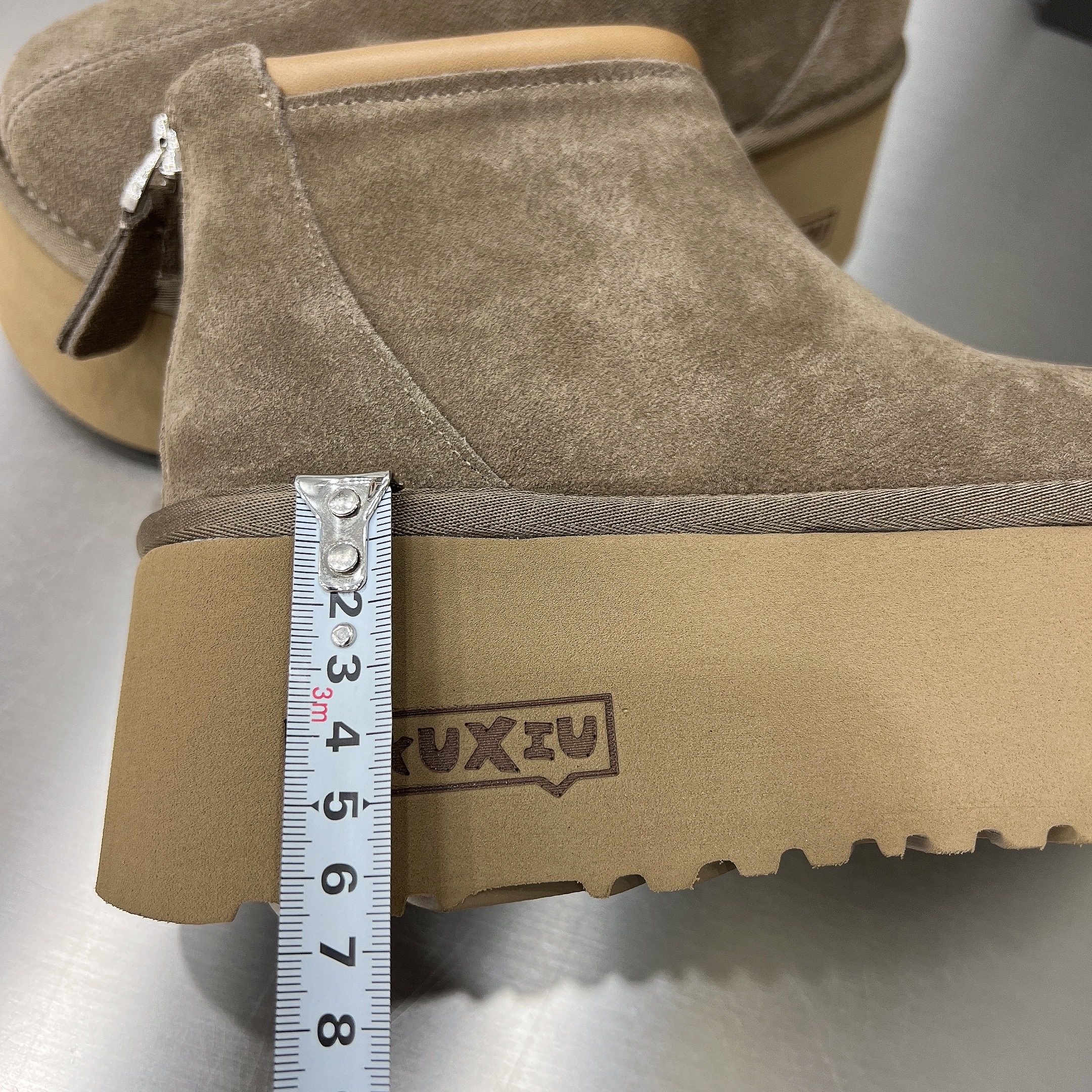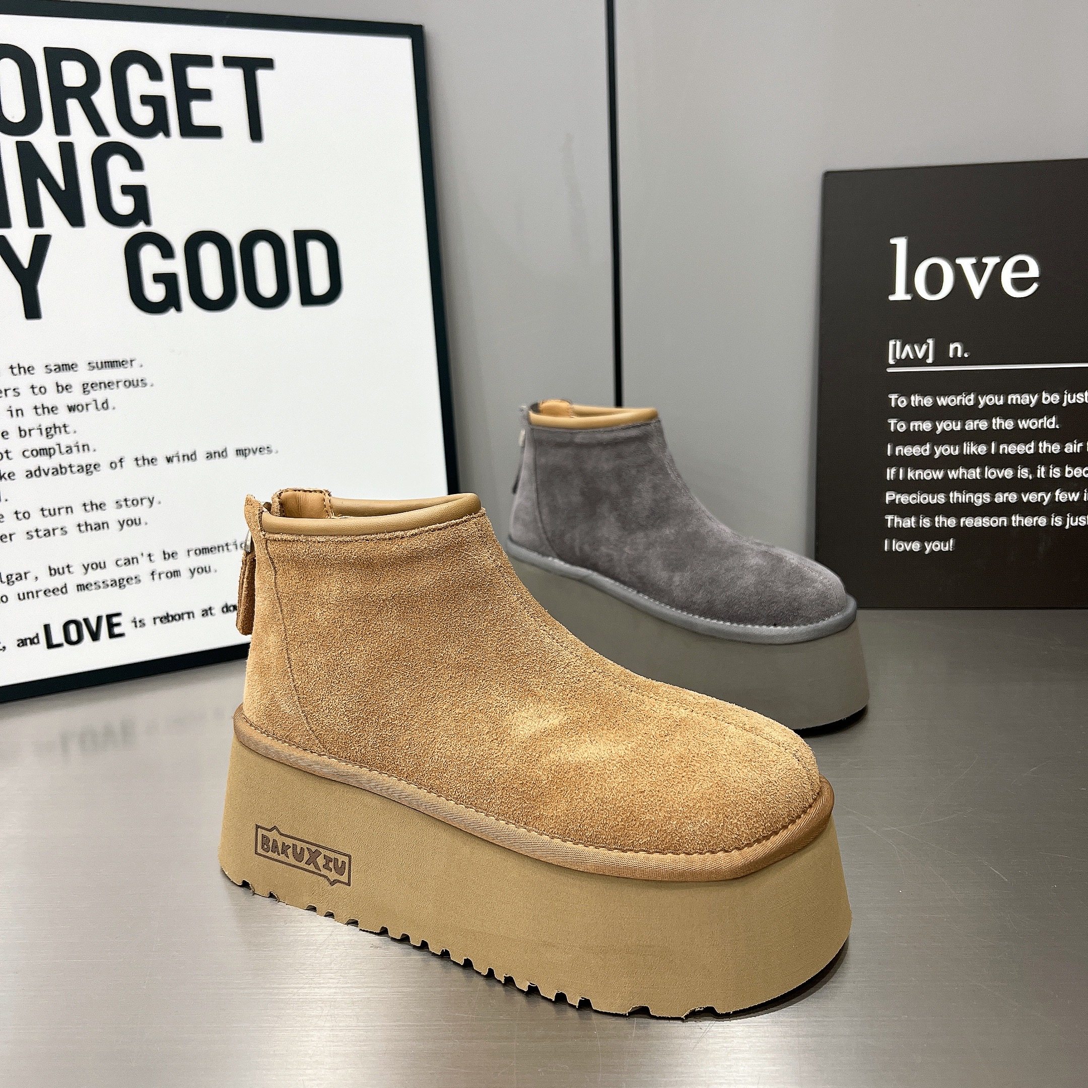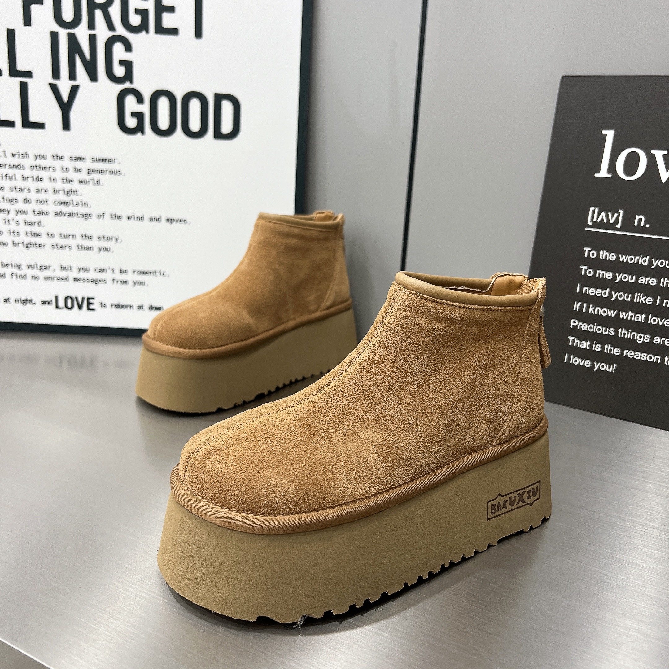 欧货2025新款真皮磨砂皮厚底松糕及踝靴圆头后拉链短靴马丁靴女鞋