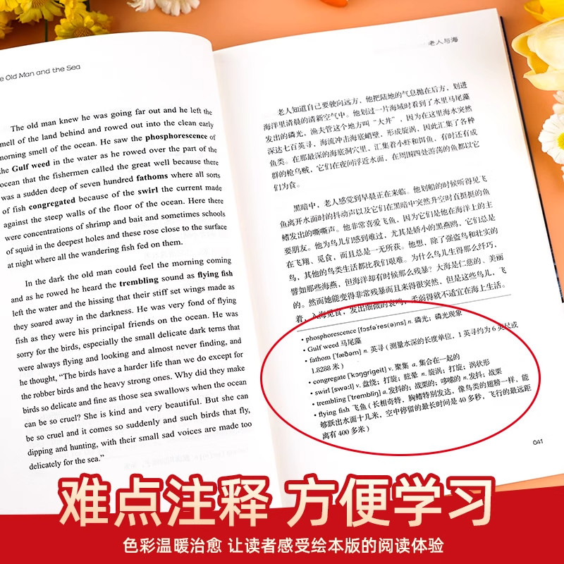 正版老人与海英汉对照注释版原版中英文对照双语读物海明威小学初高中英文版原版课外阅读世界经典文学名著小说英语阅读书籍带考点