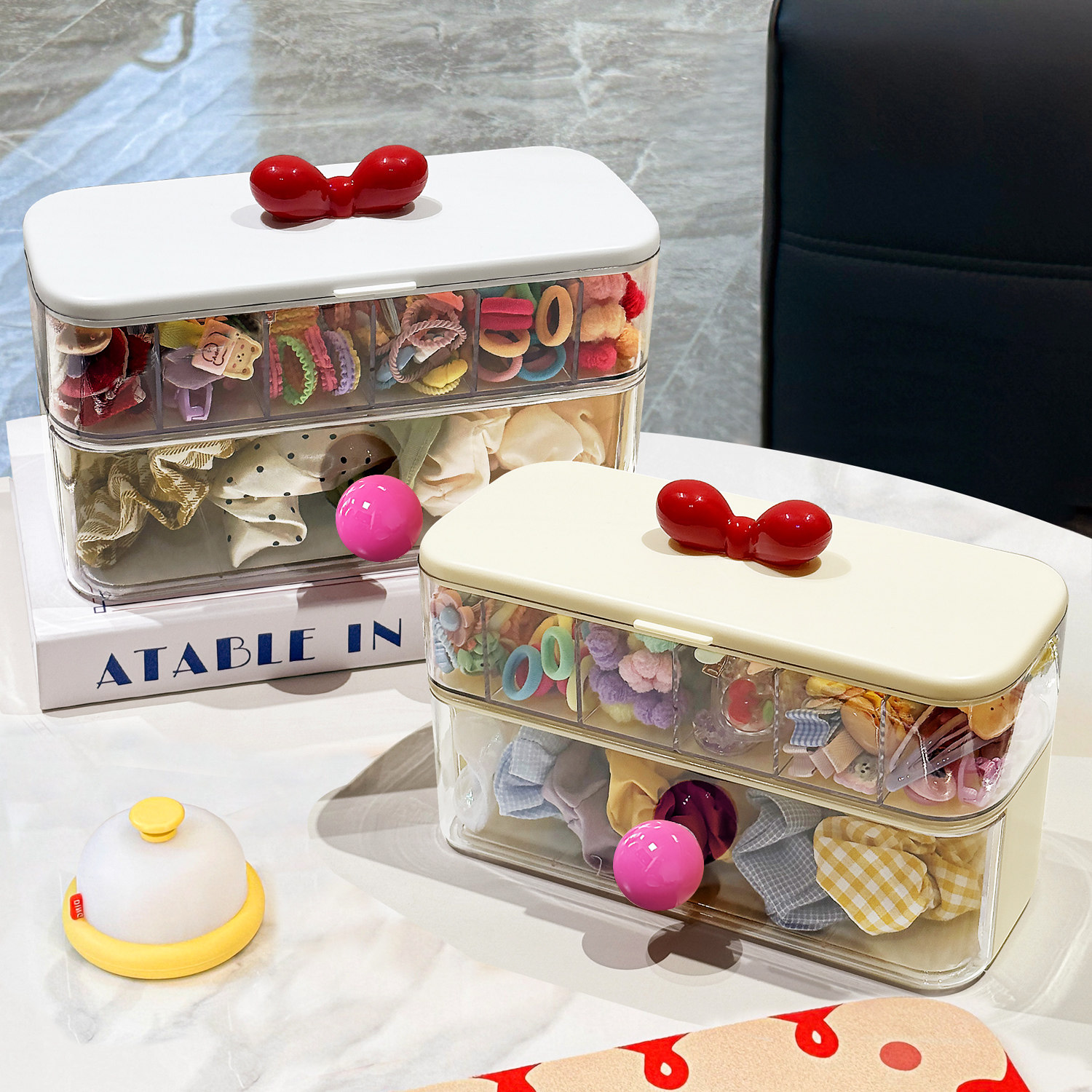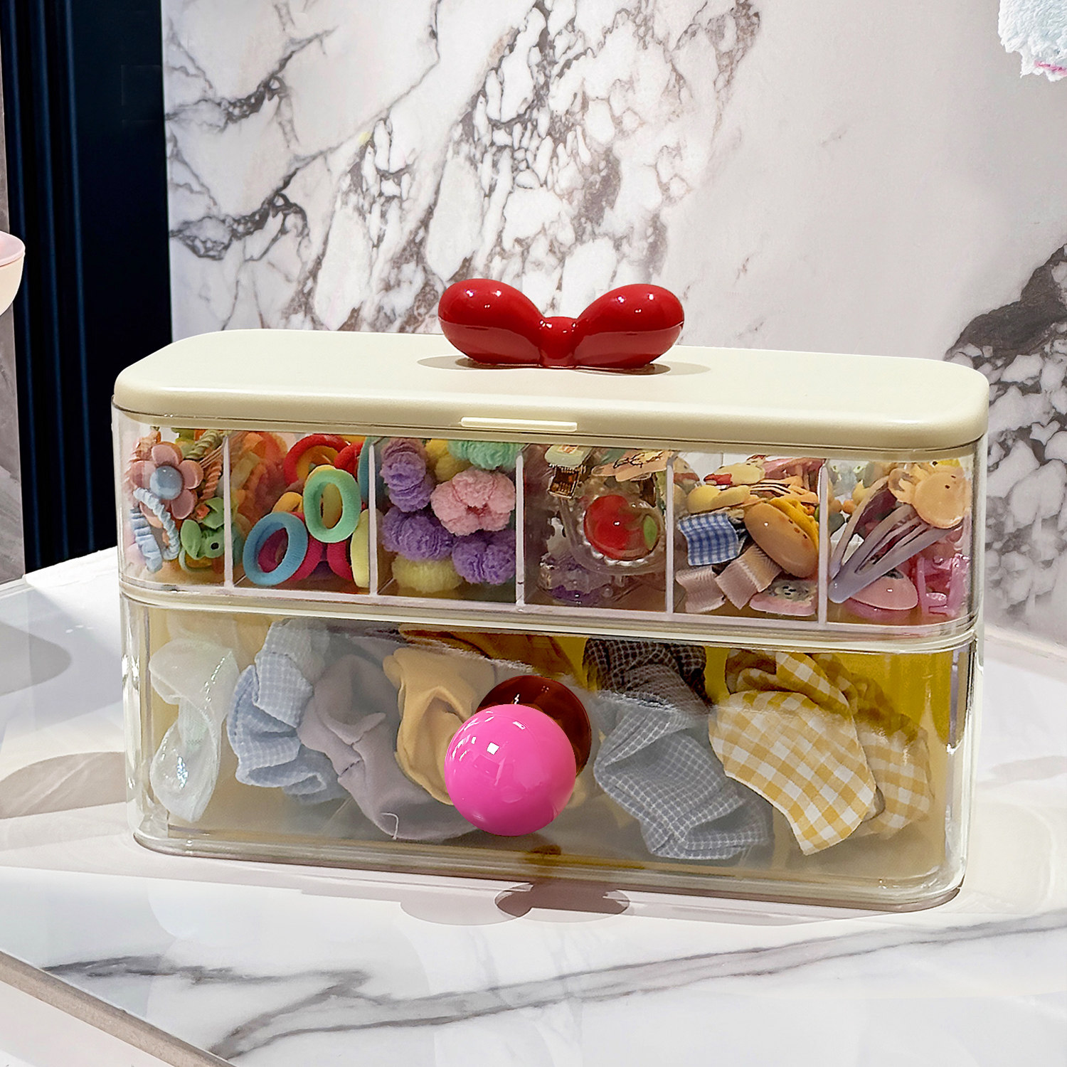 可爱发饰收纳盒小女孩皮筋发夹头绳儿童头饰整理盒透明分隔首饰盒